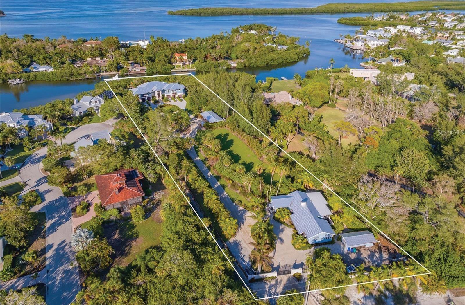Welcome to a once-in-a-generation private waterfront family compound on the coveted north end of Longboat Key—an extraordinary two-acre, fully gated coastal estate that blends architectural mastery, resort-level amenities, and rare development potential. Encompassing four buildable parcels (500, 510, 520 Nomas Way and 6680 Gulf of Mexico Drive), this legacy property offers unparalleled privacy, flexibility, and long-term value. From the moment you arrive, illuminated by classic Bevelo gas lanterns, the estate unfolds with intention and elegance. The custom-designed main residence is complemented by a separate 3-bedroom, 2-bath, 1,850-sq-ft guest home with a detached garage—perfect for extended family, guests, or staff accommodations. Every detail reflects thoughtful craftsmanship, from the 900-bottle red cedar wine cellar to the oversized custom wood-burning fireplace with gas option. Designed for both grand entertaining and everyday indulgence, the chef’s kitchen features natural gas cooking with Wolf and Sub-Zero appliances, while state-of-the-art home automation and whole-home sound elevate daily living. Step outside to a true private resort: a 15,000-gallon free-form pool with a 1,000-gallon spa, heating and chilling via reverse heat pump and natural gas, and an expansive custom tiki pavilion built for unforgettable gatherings. For boating enthusiasts, this estate is unmatched—165 feet of frontage on Bishops Bayou, two docks, three boat lifts, and deep-water, direct Intracoastal access. Across Gulf of Mexico Drive, deeded private beach access makes turquoise waters and nightly sunsets a daily ritual. Car collectors and hobbyists will appreciate six garages, including an automotive lift, plus a 50’ x 24’ covered pole barn for additional storage. Peace of mind is absolute with a 24-camera security system, safe room, elevator, and a 60kW natural gas generator powering the entire estate during any weather event. Fully fenced and gated, this property offers complete privacy without compromise. This is more than a home—it is a coastal masterpiece, a designer’s dream that exudes sophistication, balance, and harmony. An irreplaceable opportunity to own one of Longboat Key’s most remarkable waterfront estates, where luxury, security, and lifestyle converge in perfect alignment.