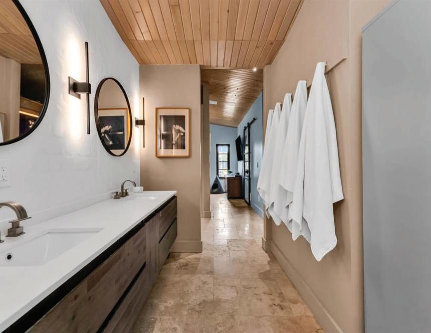 A temperature-controlled wine room and bar area complete with an ice maker, wine fridge, and kegerator elevate your hosting experience, while a cozy home theater offers the perfect space to unwind. The main kitchen and butler’s kitchen are outfitted with top-of-the-line appliances, designed for both functionality and style. For every day ease, the home includes four laundry rooms thoughtfully placed throughout.