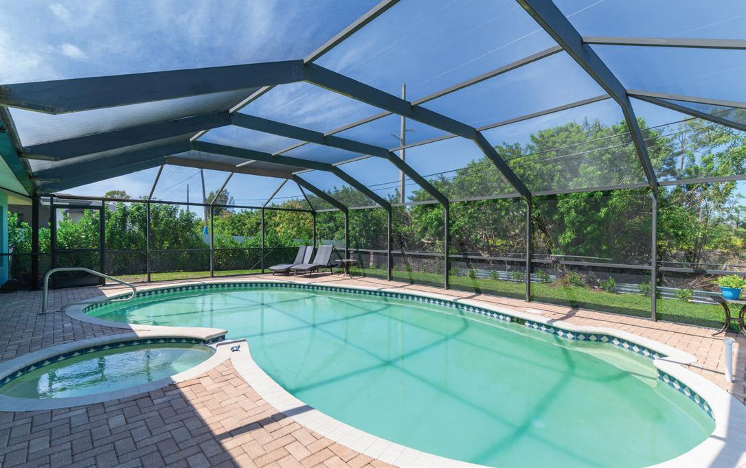 Welcome to this charming pool home in the highly sought-after Southwest Cape Coral area! Offering 3 bedrooms, 2 bathrooms, and over 1,500 square feet of living space, this residence features an open and inviting layout perfect for both everyday living and entertaining. Step outside to your own private retreat, where an oversized pool and spa are surrounded by an expansive paver deck—ideal for relaxing or hosting gatherings year-round. Recent updates include a newer roof (2019), fresh interior and exterior paint, updated tile flooring throughout, a new pool heater, and newer kitchen appliances, providing a solid foundation for the next owner. With all assessments paid and located outside of a flood zone, this home offers added value and peace of mind. With a few personal touches and updates, this property presents an excellent opportunity to customize and create your ideal Florida home. Conveniently located near shopping, dining, and top-rated schools, this is your chance to own in one of Cape Coral’s most desirable neighborhoods.