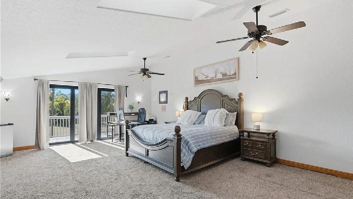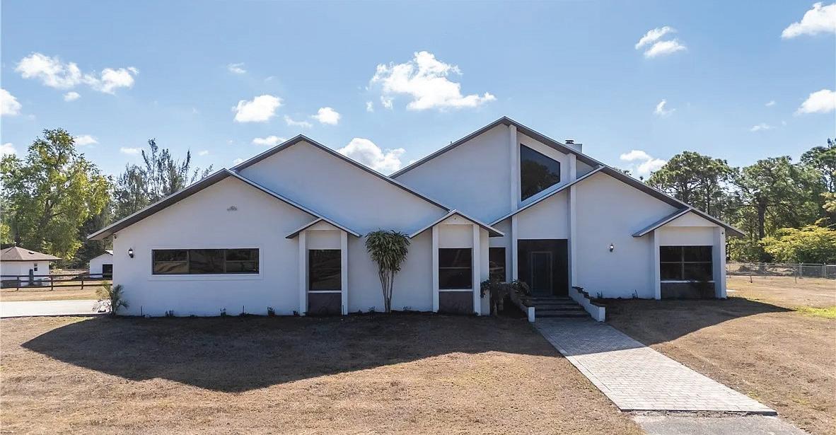 This custom home is situated on 10.49 acres, on a fresh water canal and is zoned AG-2, offering usable farmland, and exceptional privacy. A fully fenced in back yard that includes a barn with three stalls and a tack room, ideal for equestrian or hobby-farm use. The residence features cedar ceilings, two primary suites designed to capture peaceful nature views. The upstairs suite features skylights and a private balcony, perfect for enjoying wildlife and sunsets. Additional highlights include a fireplace, saltwater pool and whole-home reverse-osmosis system-combining charm, comfort and tranquility of country living within a private gated community. PID-24-43-23–00-00006.1290 Unincorporated Lee County