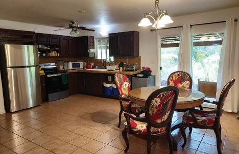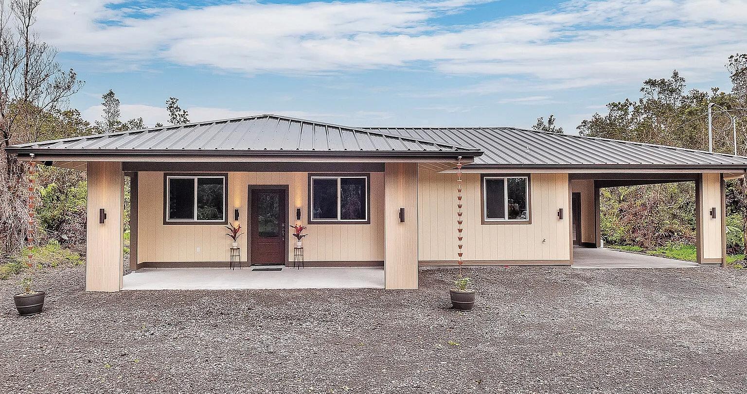 Discover this beautifully remodeled 5-bedroom, 3-bathroom home offering over 2,437 square feet of living space on a lush one-acre lot in Hawaiian Paradise Park. Thoughtfully upgraded throughout, this home combines island comfort with modern design-ready for you to move right in and enjoy. Inside, you’ll find a bright and open floor plan featuring vaulted ceilings, a new updated kitchen with a large island, sleek counter tops, and stainless-steel appliances. The kitchen flows effortlessly into the spacious living and dining areas, making it ideal for entertaining or spending quality time with Ohana. The home’s flexible layout includes a separate living area with its own entranceperfect for extended family, guests or even potential rental income. Each bathroom has been refreshed with stylish finishes and modern fixtures, while the bedrooms offer plenty of natural light and space to unwind. Outside your patio opens you up to your back yard oasis! The patio is perfect for barbeques and relaxing evenings, surrounded by an established yard with fruit trees including orange, mango, lemon and starfruit. Enjoy the peaceful atmosphere and the gentle ocean breeze, with the shoreline just minutes away. Conveniently located between Kea’au and Pahoa for shopping, dining and local amenities, this property offers the best of both worlds-tranquil island living with everyday convenience close by. Sellers are highly motivated, come see this move in ready home and make it yours today.