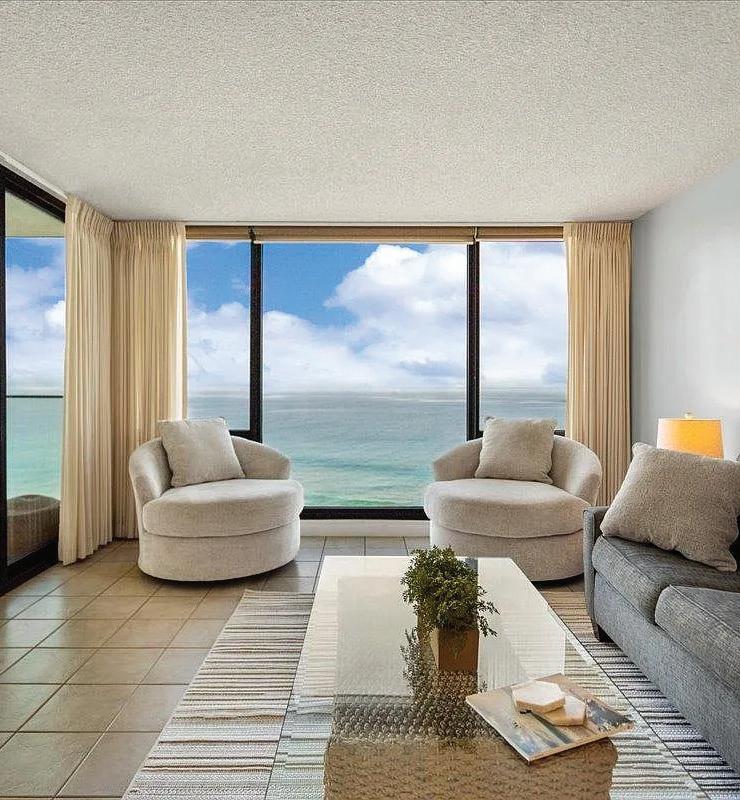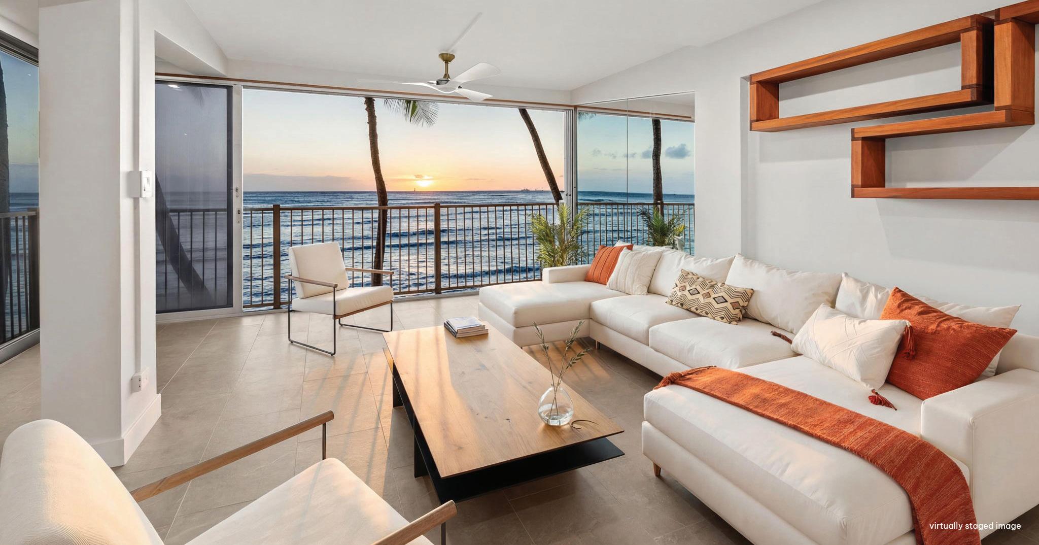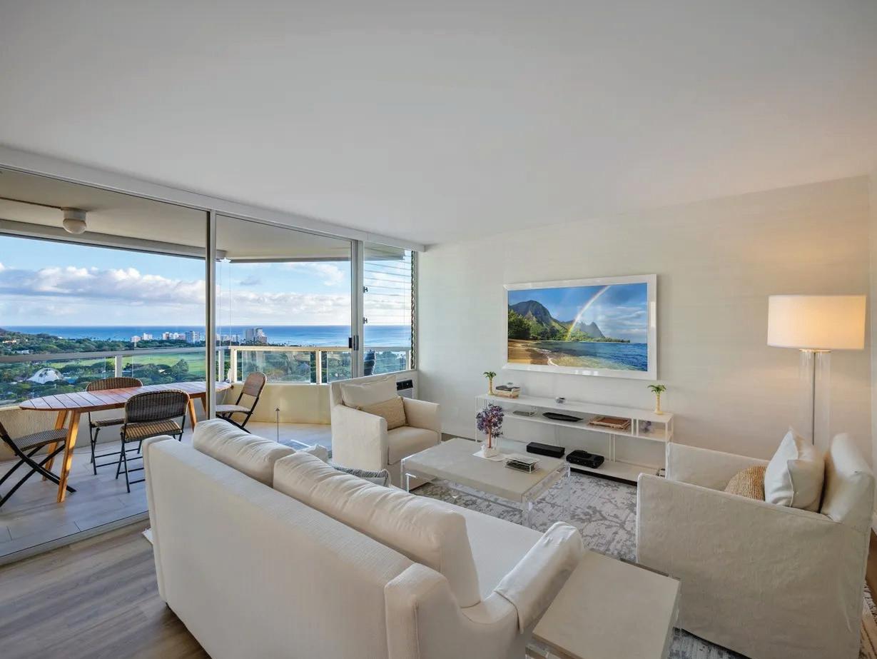 Rare opportunity to reimagine a classic Gold Coast residence at Diamond Head Apartments, an iconic Vladimir Ossipoffdesigned oceanfront building set along the slopes of worldfamous Diamond Head. This spacious condominium features the building’s largest floor plan and offers tremendous potential for renovation and customization. Perfect for buyers seeking to create a luxury retreat tailored to their vision, the residence enjoys sweeping views from ocean to mountain along with excellent cross-ventilation and cooling trade winds. The existing layout provides generous interior space and a solid foundation ready for thoughtful updates. A designer kitchen with Poliform cabinetry, Gaggenau range, Bosch appliances, and a custom stainless steel island is already in place, offering a starting point for further transformation. With its premier oceanfront setting, architectural pedigree, and incredible upside, this is a rare chance to restore and elevate a true Gold Coast gem.