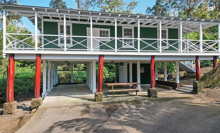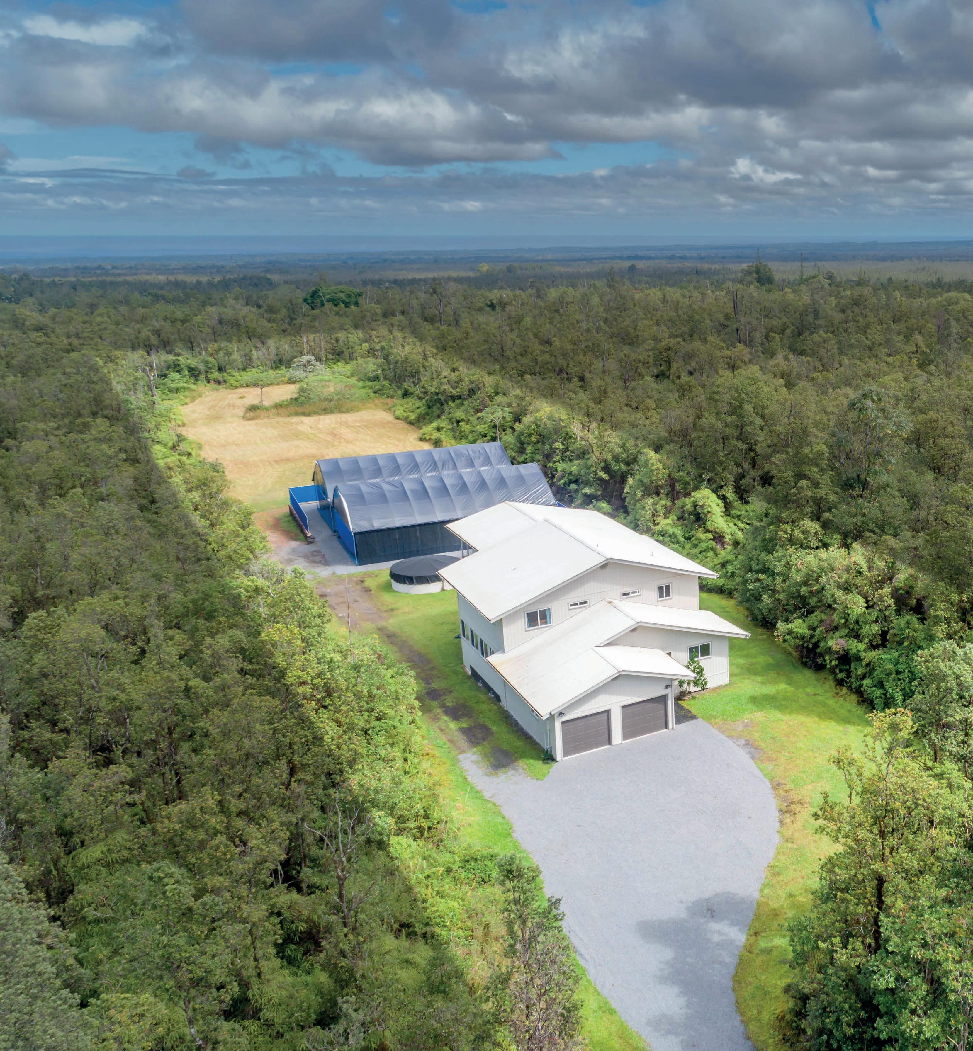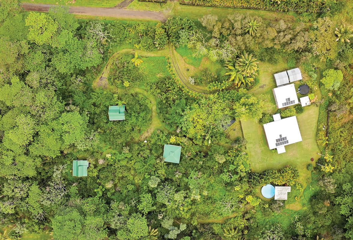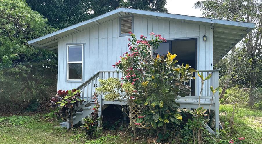 The additional 2 acres offer winding jungle walking paths leading to 2 beautifully crafted, standalone cabins with electricity & water. Each cabin provides privacy & features a front lanai, kitchenette, sleeping area, loft, outdoor bathroom & shower. Nearby, an outdoor kitchen creates an inviting space to relax & entertain while enjoying the natural surroundings. Ornamental landscaping & additional fruit trees are found throughout this area.
