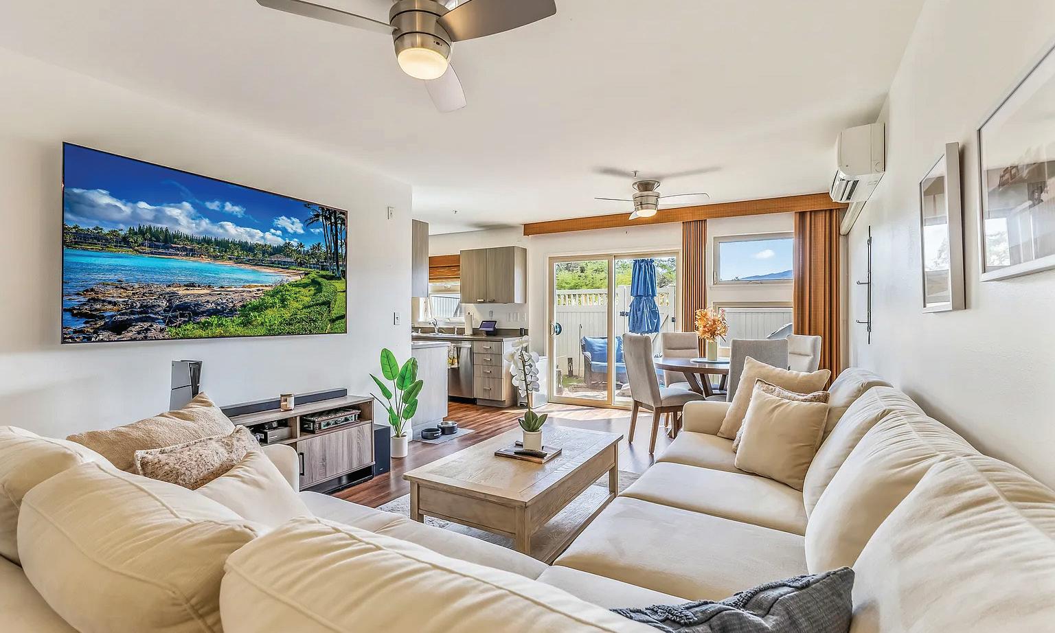 Rare ground-floor, corner 2 bed/2 bath oceanfront condo at Mahana, just steps from the beach with stunning island views and a private lanai for sunsets and whale watching. This fully furnished, well-maintained unit sleeps six, offers resort-style amenities, and serves as both a luxury retreat and strong short-term rental, with monthly fees decreasing in April 2027.
