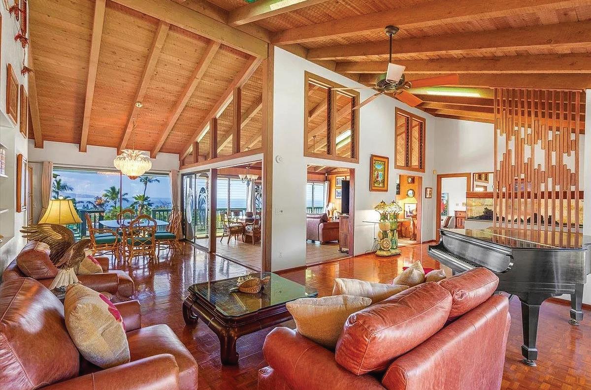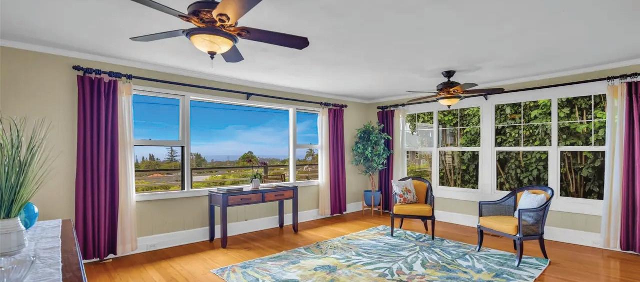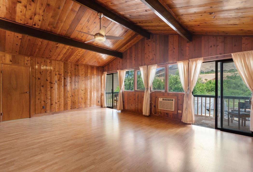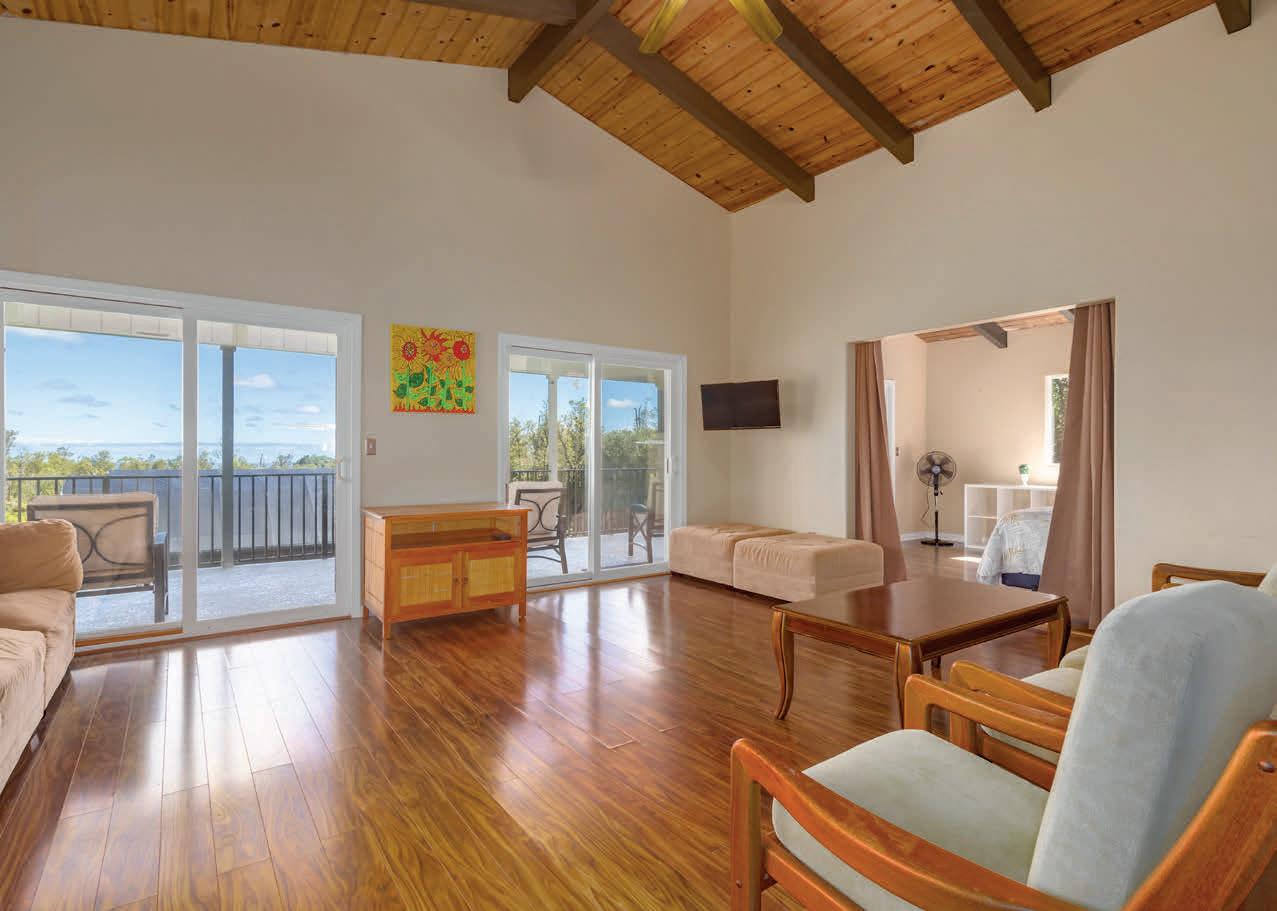The road up to 21 Hulumanu Place winds along a dramatic cliffside. Not everyone will follow it to the top. That’s what makes this place yours. This is Maluhia Country Ranches, where maluhia means peace and tranquility for a reason. Light pours through soaring ceilings, views open in every direction, and the lanai pulls you outside immediately. The main house has three bedrooms, three baths, a lofted bonus space, and a kitchen built for people who love to cook and gather. An attached studio and a detached two-bedroom cottage with jaw-dropping views round out the property. At over 2.6 acres and agriculturally zoned, the land is yours to dream on.