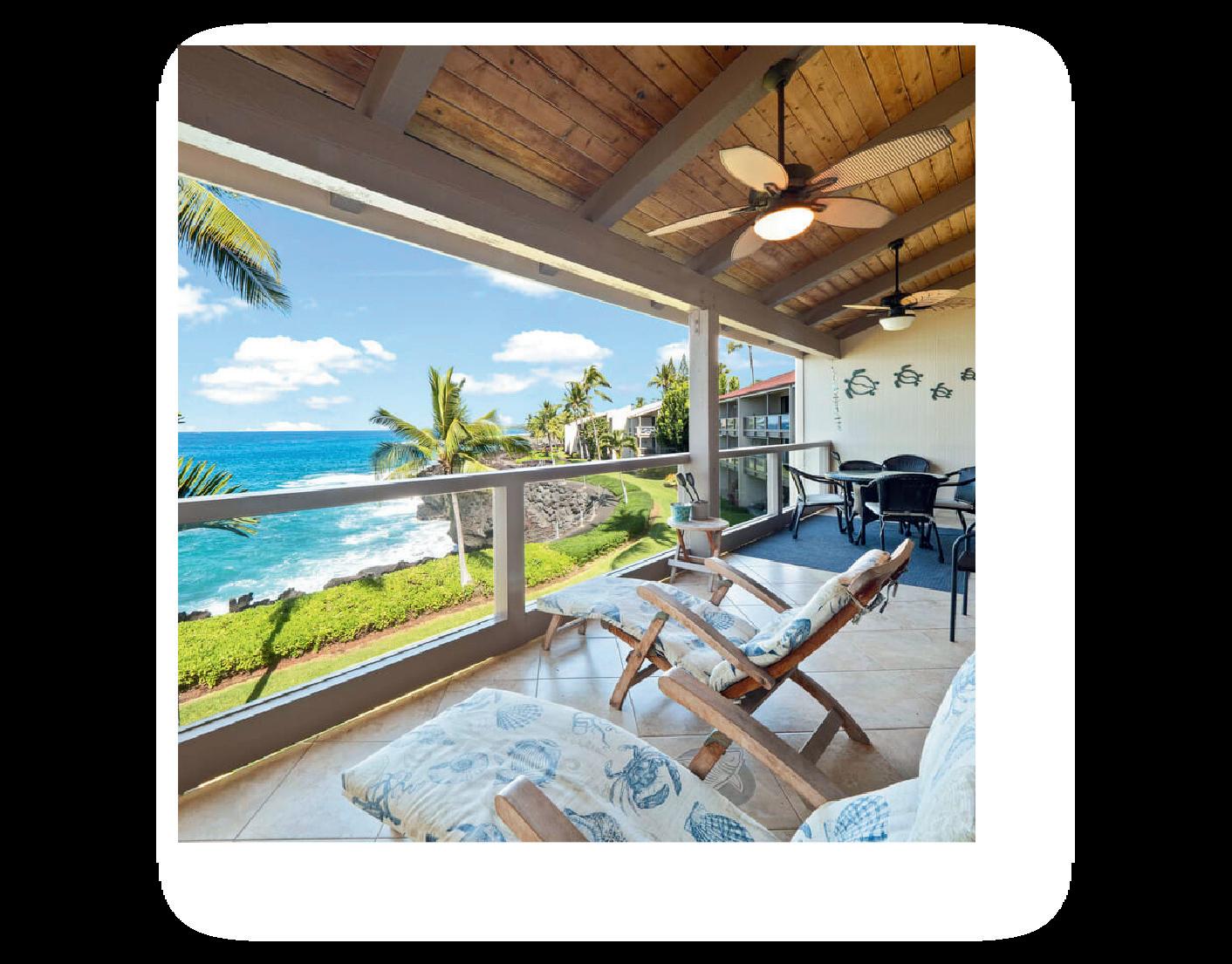 This is a leasehold property. Enjoy SPECTACULAR OCEAN VIEWS and gorgeous sunsets from this 1 bedroom/ 1 bathroom, historically a successful vacation rental. Spot whales, turtles and dolphins frolicking in the ocean from your lanai. This turnkey, fully furnished unit is awaiting you. There is a large storage area, a king size bed, sofa sleeper, quartz countertops, new vinyl flooring, washer, dryer and recessed lighting. This can be your year round residence, vacation home or second home to share with your friends and family. No dragging groceries and luggage, the elevator takes you to the second floor. Resort amenities include a pool, recreation room/library, 2 gas grills and a large workshop for owners. Restaurants, shopping, tennis, golf, pickleball and entertainment are just minutes away. The world renowned Poipu Beach is just a few minutes away. The Homeowners Association Fee covers all utilities except electric. The HOA fee covers cable and internet along with the insurance on the common areas and the facilities. The home owner is responsible for the insurance on the contents within their unit.