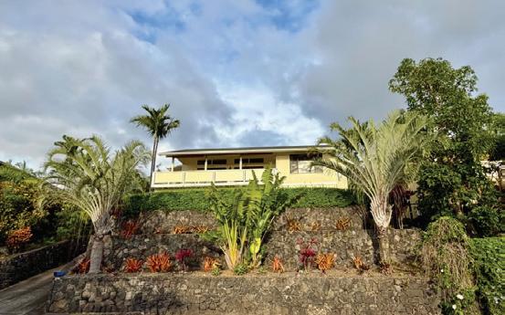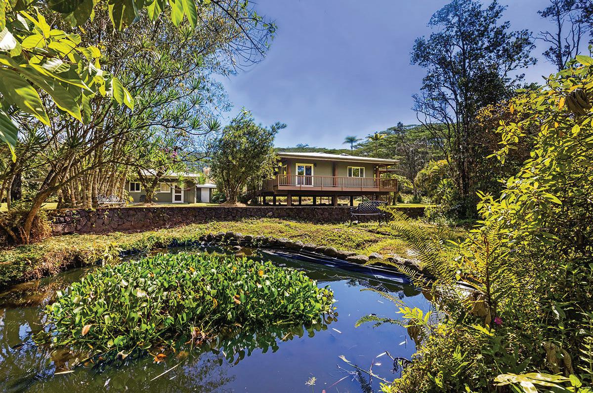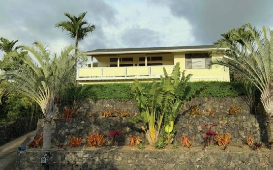 Set on a secluded lot along a quiet cul-de-sac, the home is positioned near both the coast and downtown Waimea. Lava rock terraced walls and a roughly 75-year-old magnolia tree add distinction to the surrounding grounds.