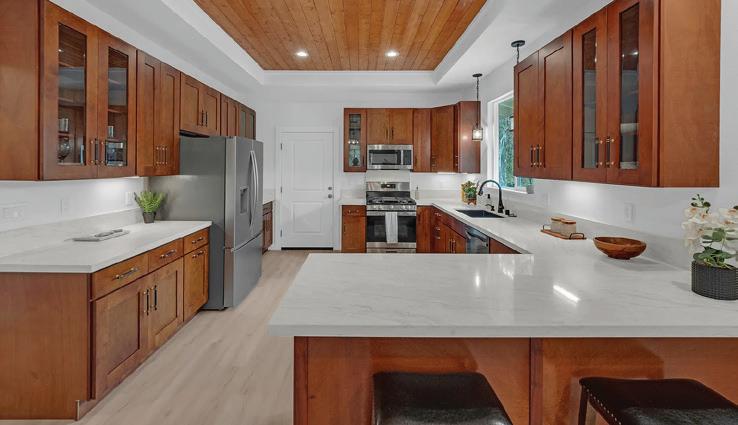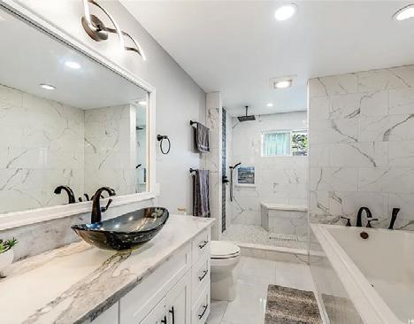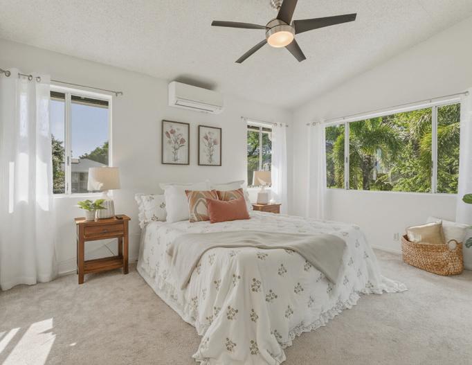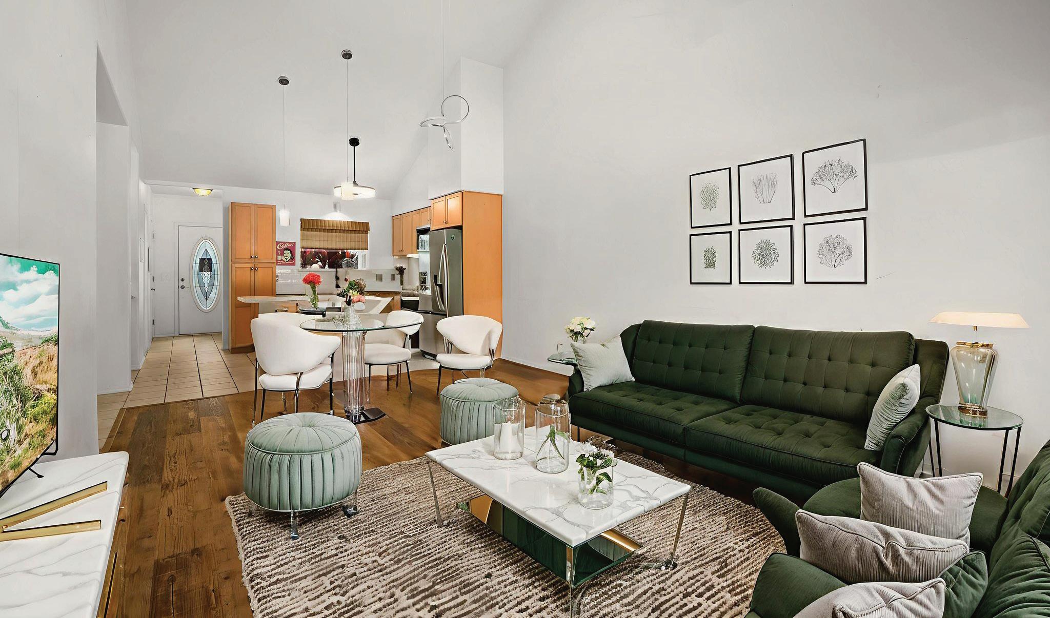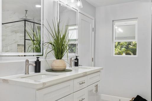 4 BEDS | 3 BATHS | 1,665 SQFT | $475,000 One of the finest and most spacious 4-bedroom, 3-bath homes, featuring beautiful ceramic tile flooring in the living room, kitchen, and bathrooms. Matching countertops in all bathrooms, with new laminate flooring and ceiling fans in all bedrooms. Two master bedrooms, one with a deep walk-in closet.