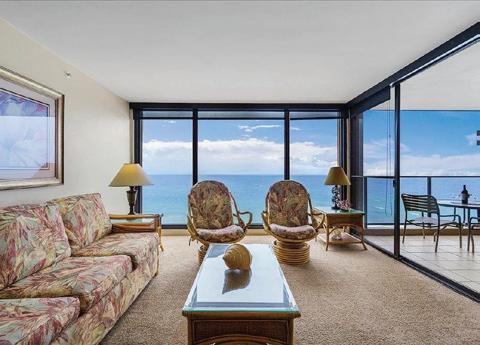 Mahana at Kaanapali is a premier oceanfront, Hotel-zoned resort located directly on world-famous Kaanapali Beach. Known for its floor-to-ceiling windows and unmatched proximity to the shoreline, Mahana offers breathtaking sunsets, seasonal whale watching, and convenient access to the Kaanapali boardwalk, Whalers Village, and beachfront dining.