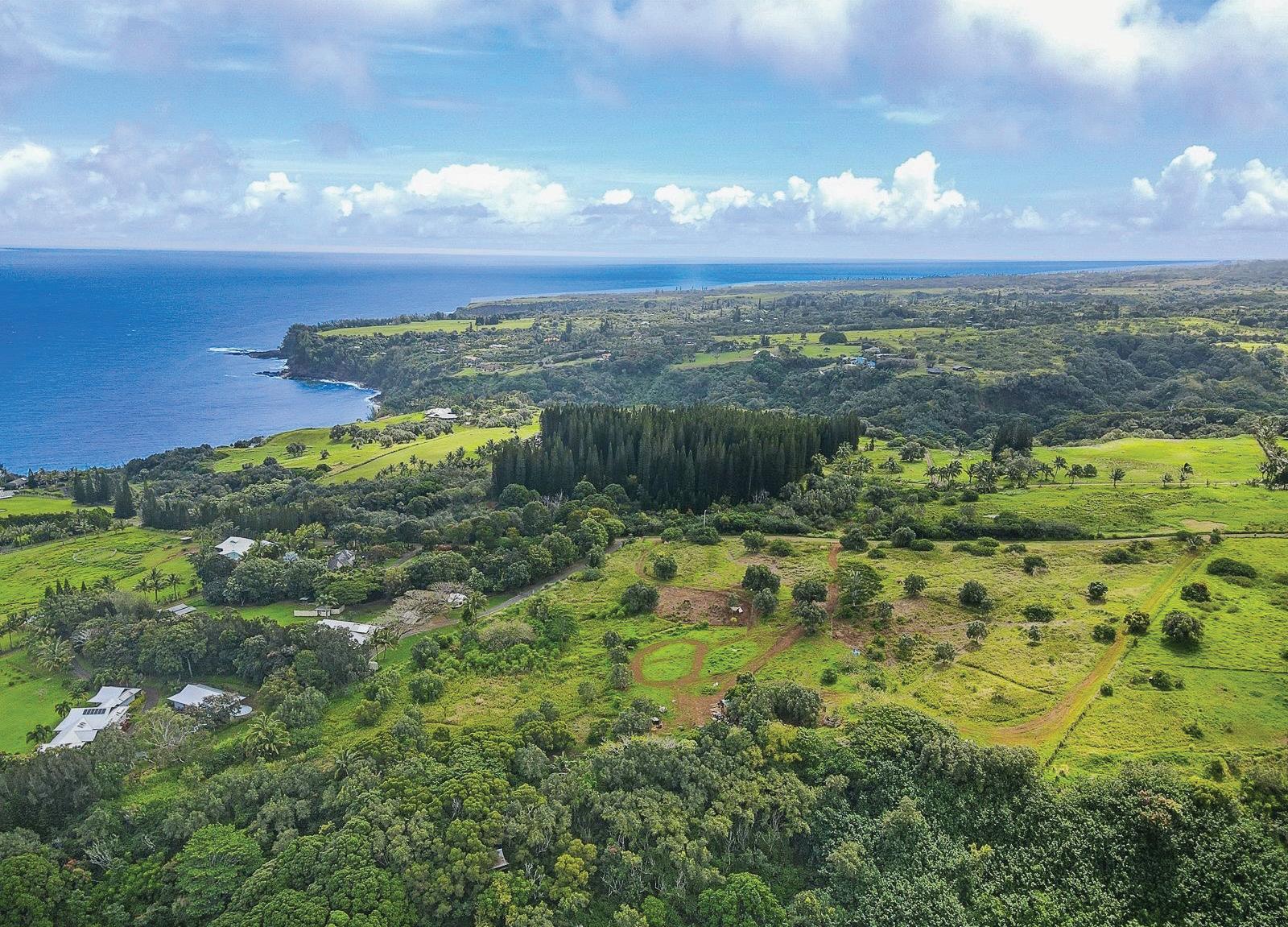 Rare 27-acre property in Haiku on Maui’s North Shore, offering exceptional privacy, serenity, and sweeping panoramic views. This unique estate spans 3 contiguous TMKs and is gated for added security and exclusivity. Enjoy expansive ocean and Haleakala views from multiple vantage points across the property. A custom-built 2-bedroom, 1-bath home is situated on the upper portion of the land, providing a comfortable living space to enjoy immediately — or to serve as a guest house while you build your dream estate. The upper acreage features flat, usable pasture land, while the lower portion offers gently rolling terrain. This acreage is ideal for agricultural use, an equestrian estate, a private retreat, an estate home or even a subdivision. The land has not been farmed in over 30 years. Seller financing is available, making this a rare opportunity to secure large, versatile acreage in Haiku with flexible terms.