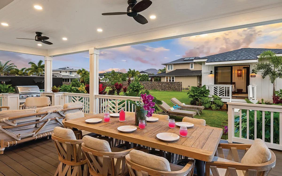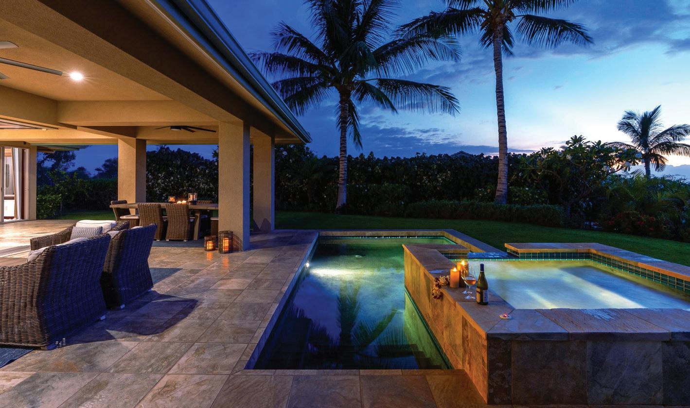 Designed with comfort and style in mind, this Villa features two ocean-view primary suites, a spacious Great Room with high ceilings and disappearing pocket doors that open the home to the tropical yard, seamlessly blending Hawaii’s indoor and outdoor living. Entertain or unwind on the expansive covered lanai overlooking your private pool, spa, and lush yard—perfect for enjoying Hawaii’s iconic sunsets in total privacy.