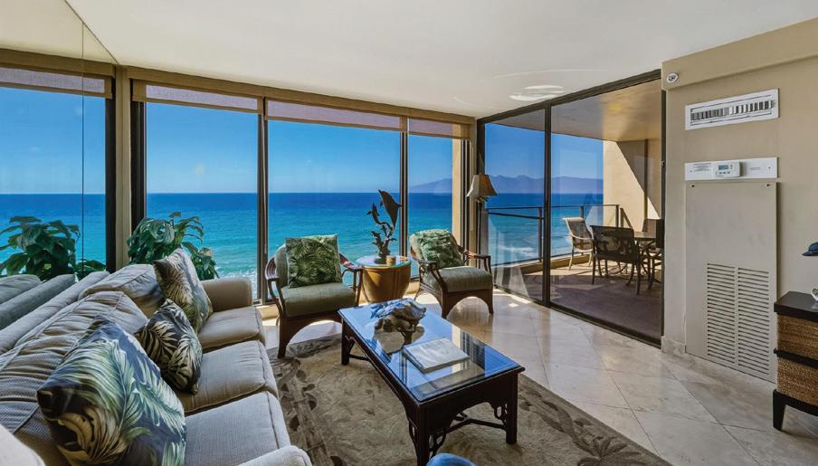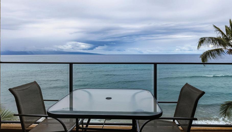 Highly sought-after oceanfront penthouse at The Mahana, this 1 bed/1 bath condo offers 180° panoramic views, floor-to-ceiling windows, and a private lanai for year-round sunsets and whale watching. With direct beach access and resort-style amenities, it’s a flexible opportunity for personal use or customization into a prime investment.