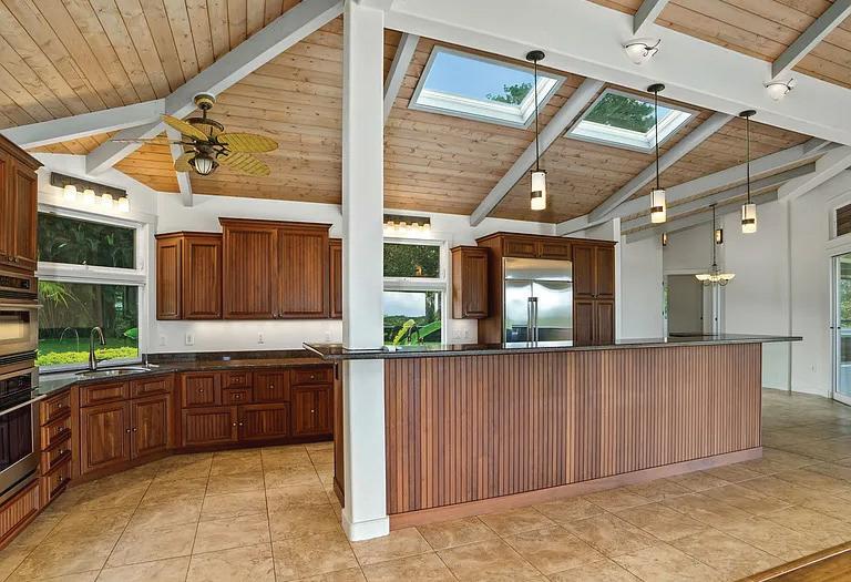 Set on over five private acres in one of Haiku’s most serene pockets, this cedar estate offers a rare combination of privacy, scale, and craftsmanship—properties like this are seldom available. The 3-bedroom, 2-bath residence spans approximately 2,430 sq ft, defined by soaring ceilings, rich natural materials, and a warm architectural presence. The home has been carefully refined over time, with custom millwork and elevated finishes throughout. At the center, a beautifully designed kitchen anchors the home—complete with an oversized Wolf range, warming drawers, wine refrigeration, reverse-osmosis water, and discreet appliance garages—flowing effortlessly into indoor and outdoor living spaces, including a screened lanai overlooking the grounds. A dramatic great room with 20+ ft ceilings offers volume and light, while additional living spaces create flexibility for both everyday living and entertaining. Beyond the main residence, the property unfolds with an exceptional collection of improvements: