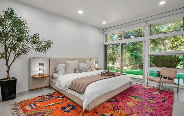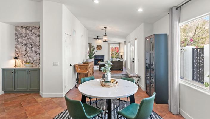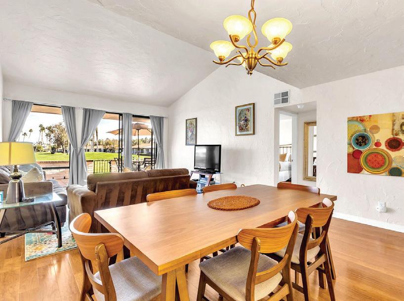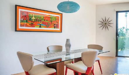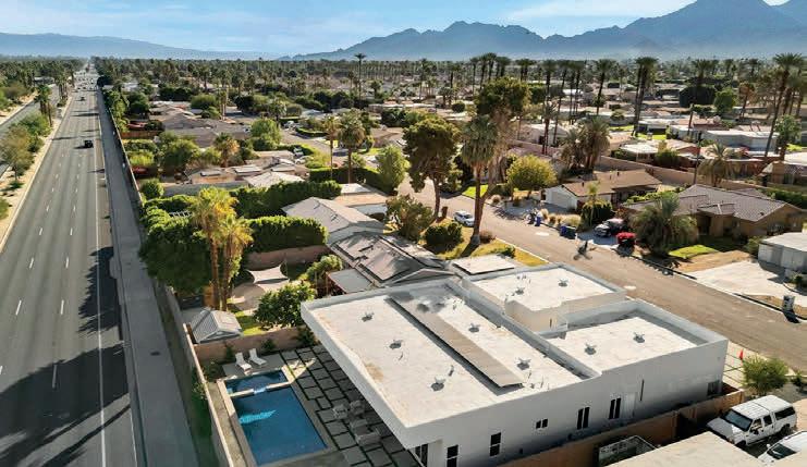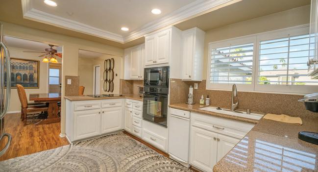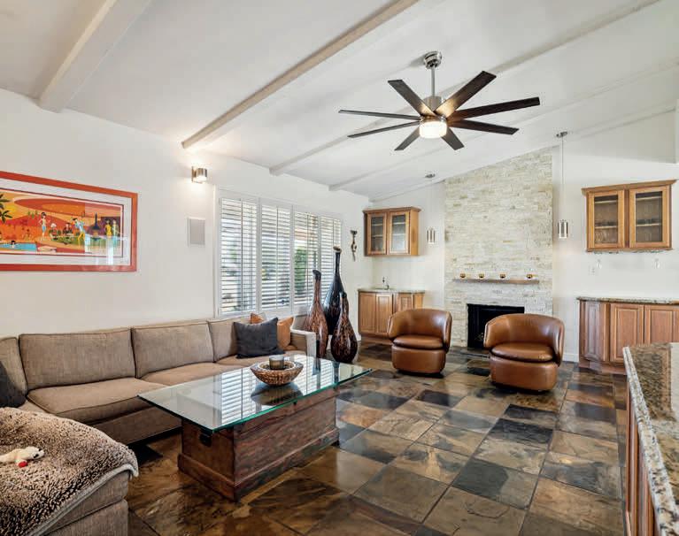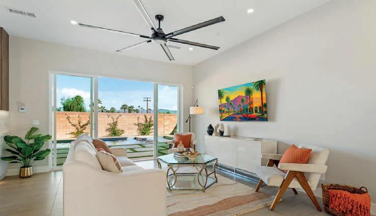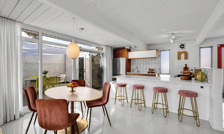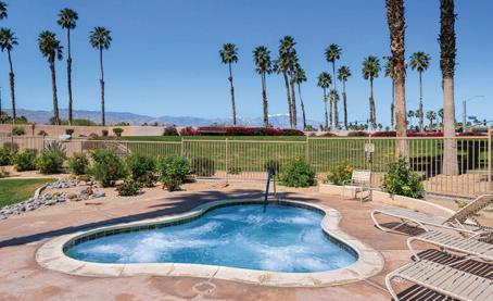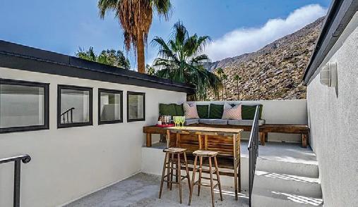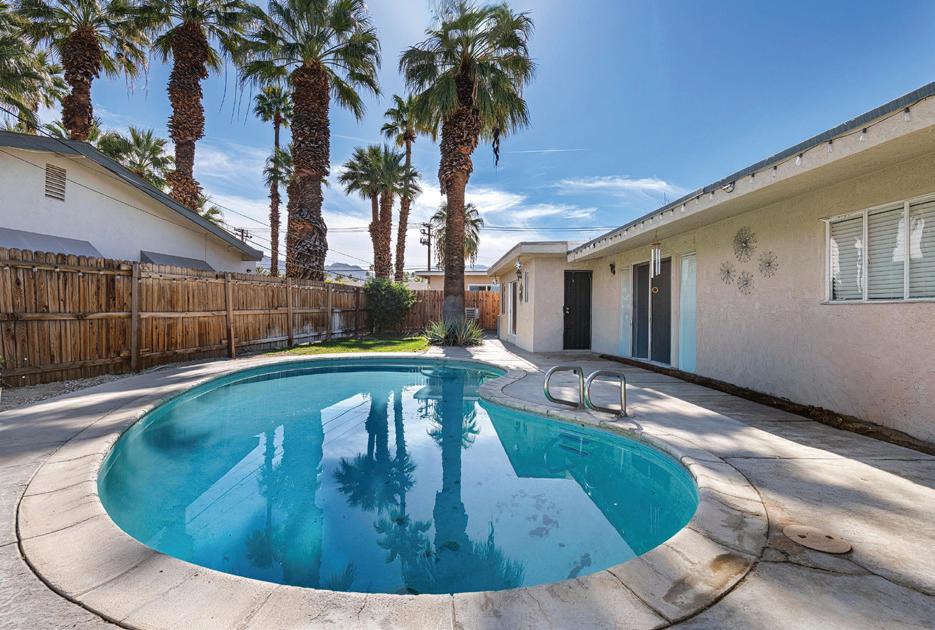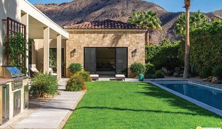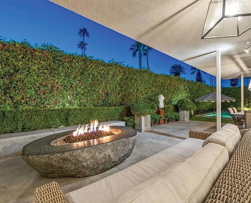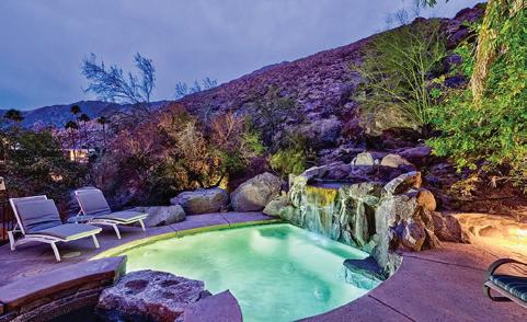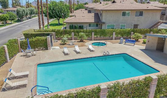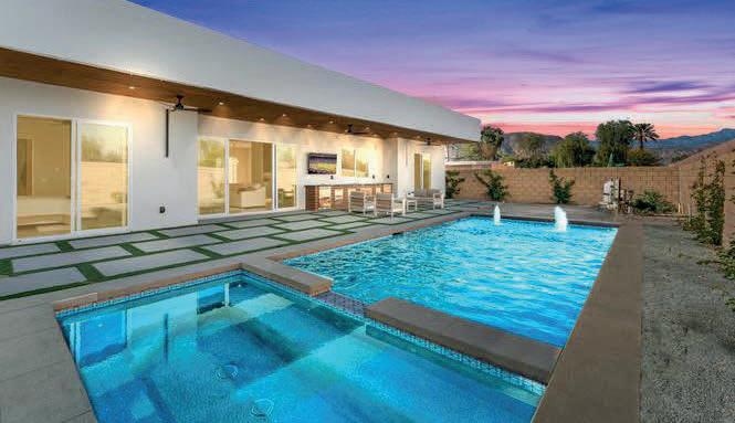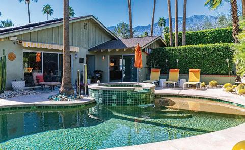 Experience the pinnacle of Palm Springs living in this meticulously reimagined 1,252-square-foot residence. Every inch of this single-level, twobedroom, two-bath home has been transformed with luxury materials and thoughtful attention to detail. The open-concept layout is centered around a show-stopping Chef’s kitchen, anchored by a 12-foot granite waterfall island with ample integrated storage, top-of-the-line Bosch stainless steel appliances, and a professional Zephyr range hood. Custom cabinetry with dovetail and soft-close finishes provides a sophisticated, tailored feel. From sunset cocktails to gourmet dinner parties, this Chef’s kitchen blends high-design aesthetics with pro-grade performance for a truly elevated entertaining experience. The interior is bathed in light by added clerestory windows and premium Milgard energy efficient windows and doors. Porcelain tile floors flow seamlessly into the bathrooms, which feature custom tile work and lighted vanity mirrors. Additional upgrades include Bali Blinds, custom California Closets, Pelican water filtration system, a 16 Seer Rheem HVAC unit and recessed lighting. Enjoy true indoor-outdoor living from the front and back patios with hand-laid Saltillo tiles and breathtaking panoramic mountain views. Positioned on an incredible interior lot on a quiet cul-de-sac by the pond, bridge and walkways, you are just steps from one of the desert’s most beautifully landscaped gated enclaves. A MASTERPIECE