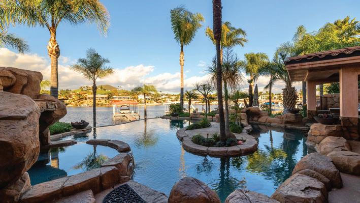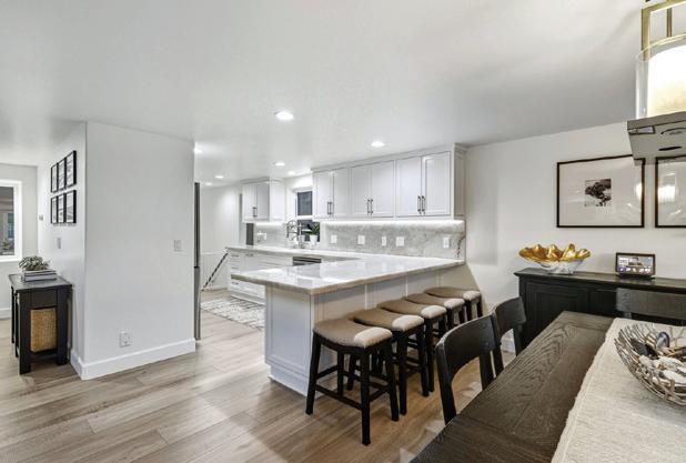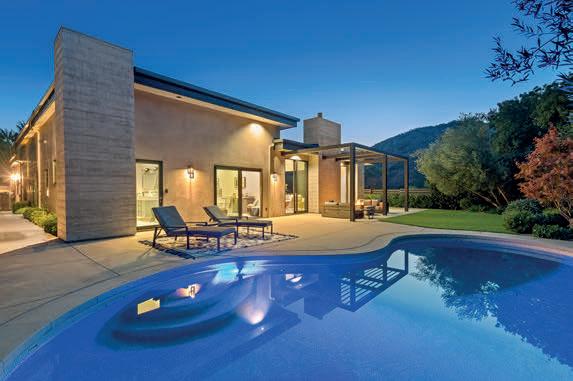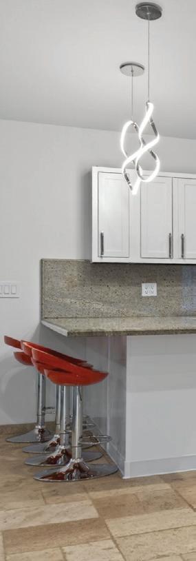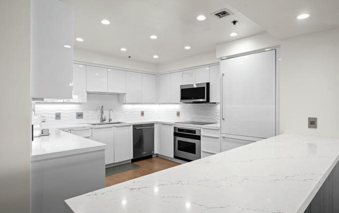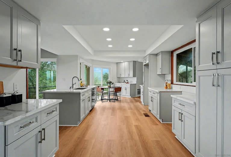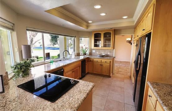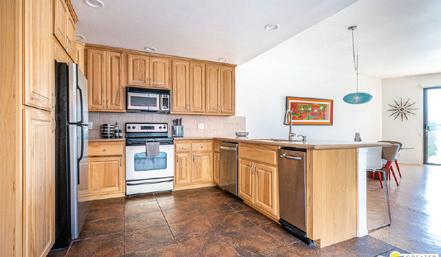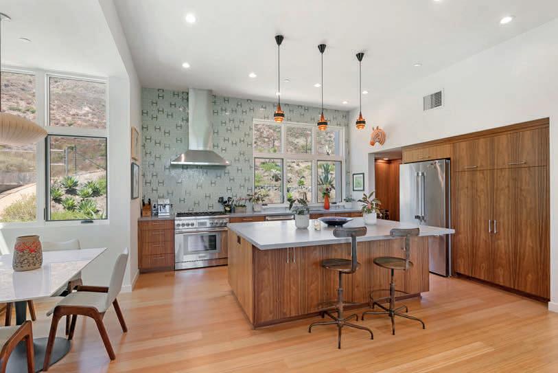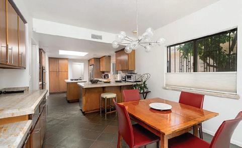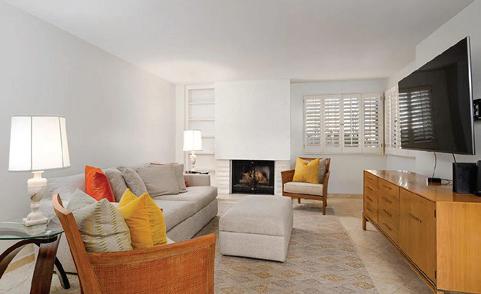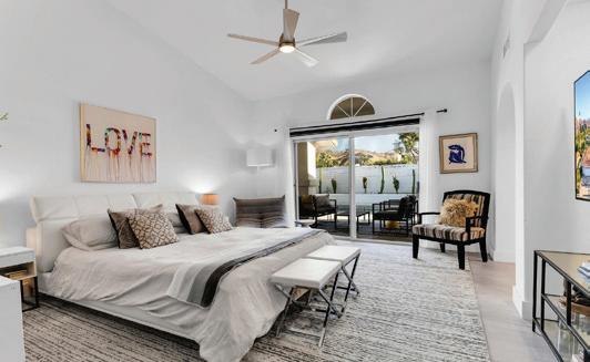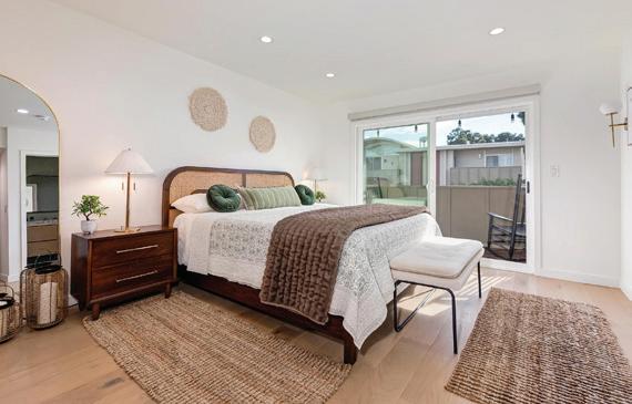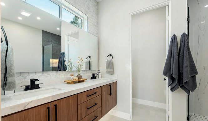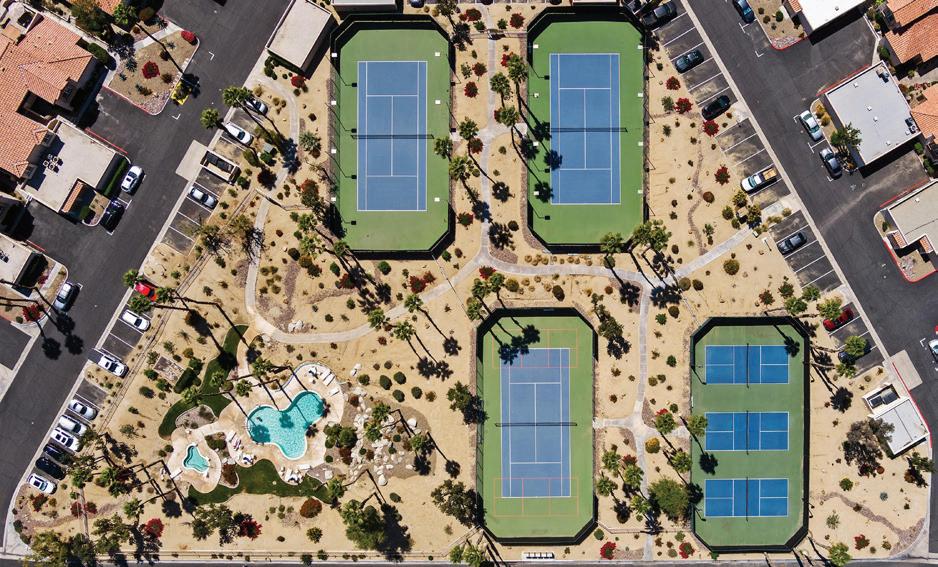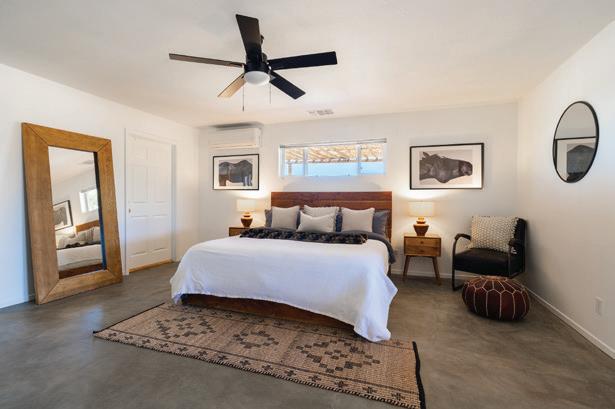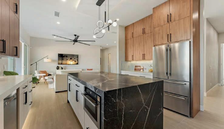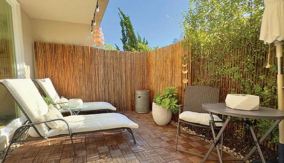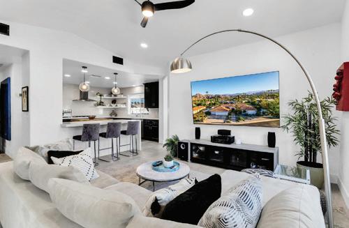 Experience the pinnacle of Palm Springs living in this meticulously reimagined 1,252-square-foot residence. Every inch of this single-level, twobedroom, two-bath home has been transformed with luxury materials and thoughtful attention to detail. The open-concept layout is centered around a show-stopping Chef’s kitchen, anchored by a 12-foot granite waterfall island with ample integrated storage, top-of-the-line Bosch stainless steel appliances, and a professional Zephyr range hood. Custom cabinetry with dovetail and soft-close finishes provides a sophisticated, tailored feel. From sunset cocktails to gourmet dinner parties, this Chef’s kitchen blends high-design aesthetics with pro-grade performance for a truly elevated entertaining experience. The interior is bathed in light by added clerestory windows and premium Milgard energy efficient windows and doors. Porcelain tile floors flow seamlessly into the bathrooms, which feature custom tile work and lighted vanity mirrors. Additional upgrades include Bali Blinds, custom California Closets, Pelican water filtration system, a 16 Seer Rheem HVAC unit and recessed lighting. Enjoy true indoor-outdoor living from the front and back patios with hand-laid Saltillo tiles and breathtaking panoramic mountain views. Positioned on an incredible interior lot on a quiet cul-de-sac by the pond, bridge and walkways, you are just steps from one of the desert’s most beautifully landscaped gated enclaves. A MASTERPIECE