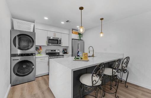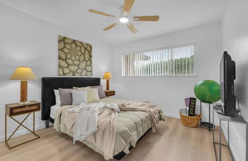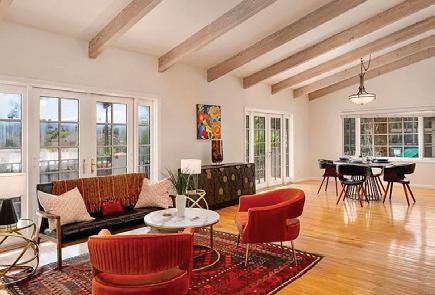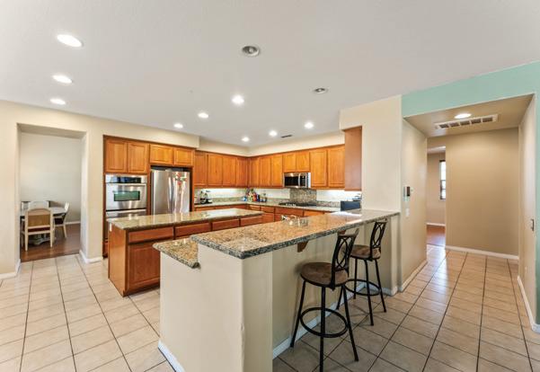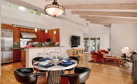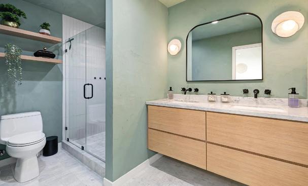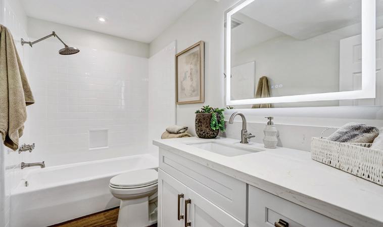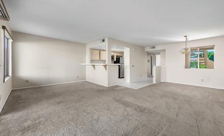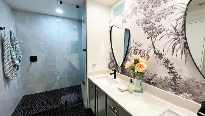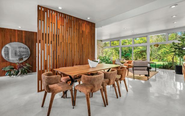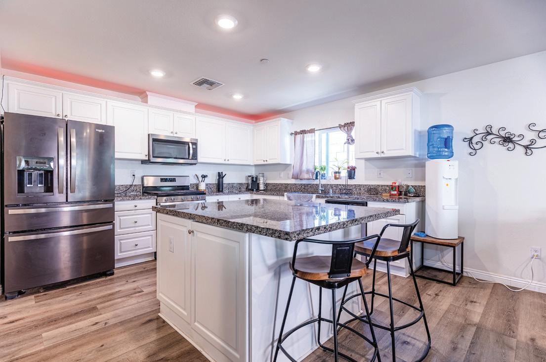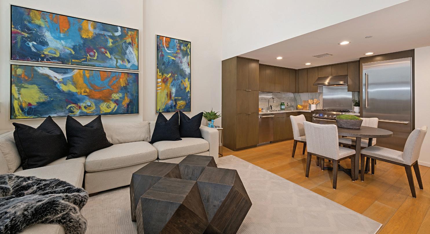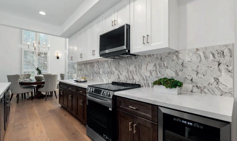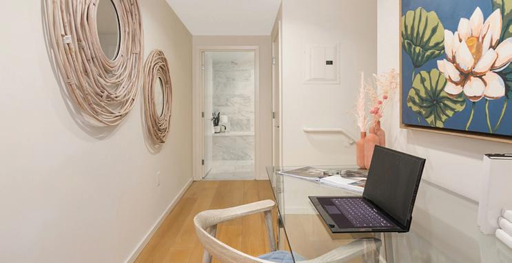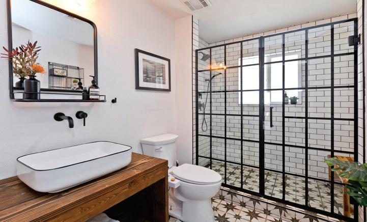 Experience the pinnacle of Palm Springs living in this meticulously reimagined 1,252-square-foot residence. Every inch of this single-level, twobedroom, two-bath home has been transformed with luxury materials and thoughtful attention to detail. The open-concept layout is centered around a show-stopping Chef’s kitchen, anchored by a 12-foot granite waterfall island with ample integrated storage, top-of-the-line Bosch stainless steel appliances, and a professional Zephyr range hood. Custom cabinetry with dovetail and soft-close finishes provides a sophisticated, tailored feel. From sunset cocktails to gourmet dinner parties, this Chef’s kitchen blends high-design aesthetics with pro-grade performance for a truly elevated entertaining experience. The interior is bathed in light by added clerestory windows and premium Milgard energy efficient windows and doors. Porcelain tile floors flow seamlessly into the bathrooms, which feature custom tile work and lighted vanity mirrors. Additional upgrades include Bali Blinds, custom California Closets, Pelican water filtration system, a 16 Seer Rheem HVAC unit and recessed lighting. Enjoy true indoor-outdoor living from the front and back patios with hand-laid Saltillo tiles and breathtaking panoramic mountain views. Positioned on an incredible interior lot on a quiet cul-de-sac by the pond, bridge and walkways, you are just steps from one of the desert’s most beautifully landscaped gated enclaves. A MASTERPIECE