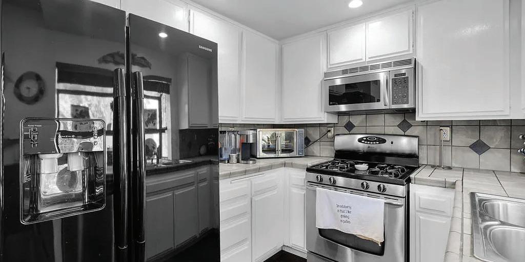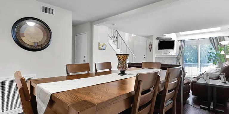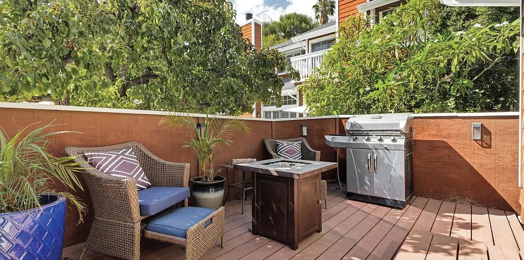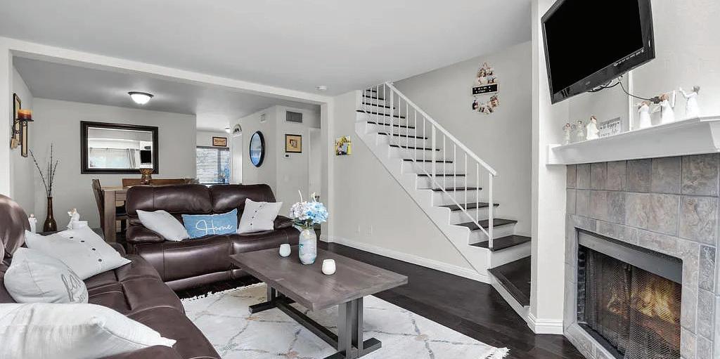 This light-filled, south-facing, updated PLAN 1 townhome in The Manhattan Village features 2 bedrooms, 2 bathrooms, dual living spaces, laundry, a builtin desk area, a balcony, and an oversized patio. Recent upgrades include updated bathrooms, flooring, electrical fixtures, plumbing, patio, and balcony. The kitchen was most recently updated and shows like new. The primary suite offers high ceilings, a walk-in closet, and a private balcony. The 2-car garage provides direct access to the home and offers ample storage.
