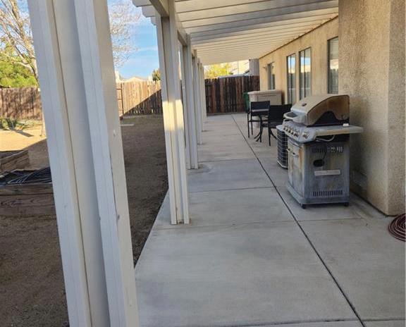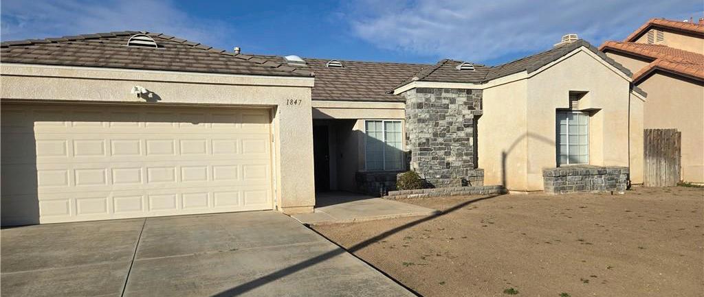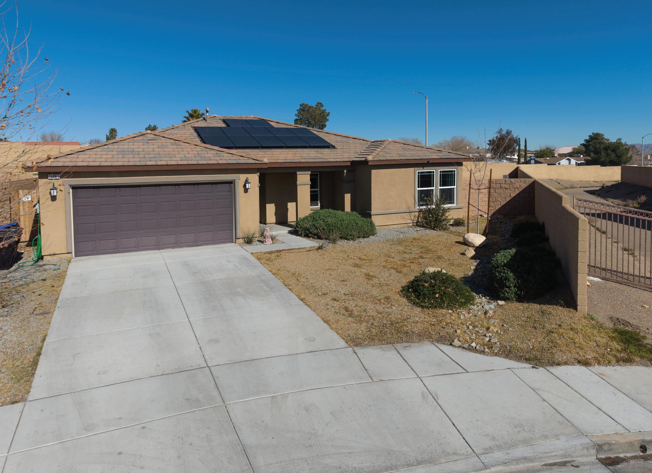clean home in a quiet, established Palmdale neighborhood on the westside. Featuring an open floor plan with a large living room, plenty of windows, and a spacious covered patio perfect for entertaining. The master suite has direct patio access, a walk-in closet, and a unique double-glass window shower. Two additional bedrooms, a hall bath, new paint, finished ceilings, and a finished garage with a custom workbench. Located near shopping, good schools, and Marie Kerr Park, this well-maintained home is move-in ready.