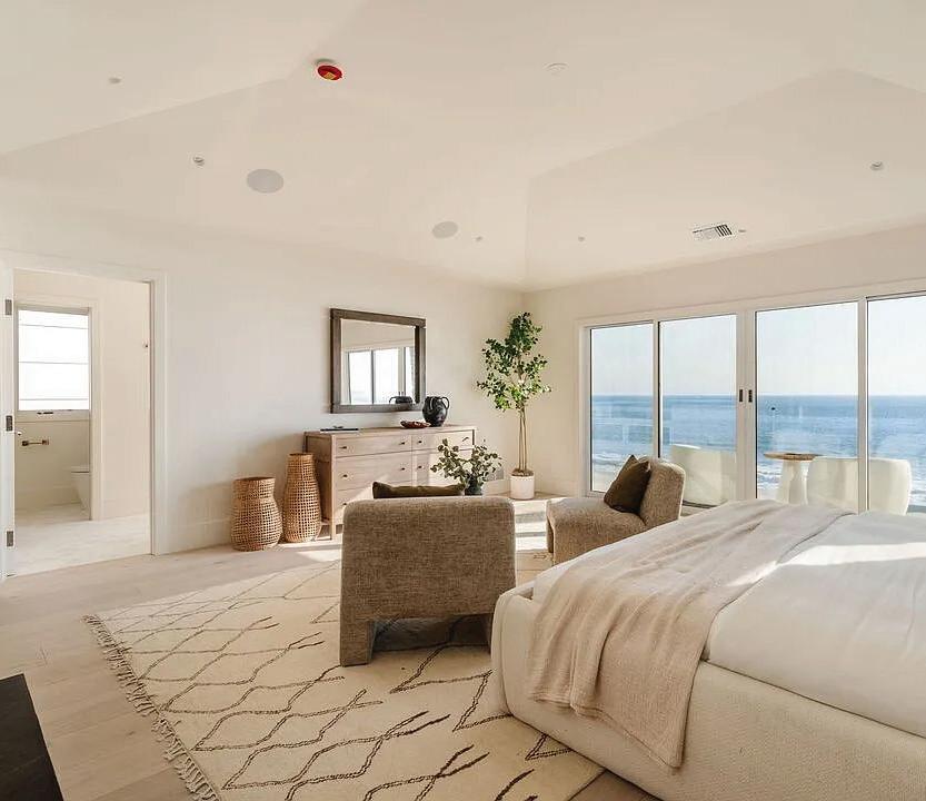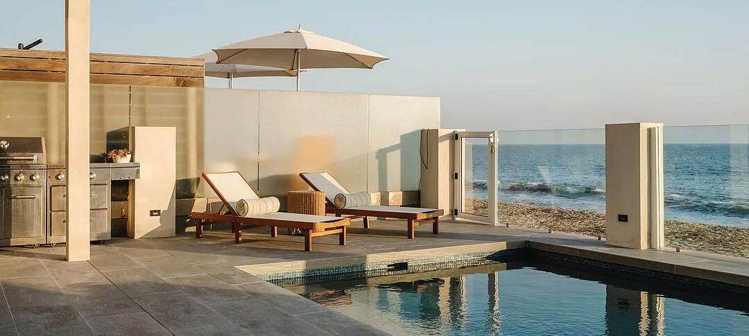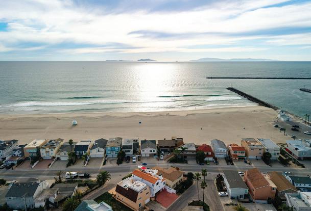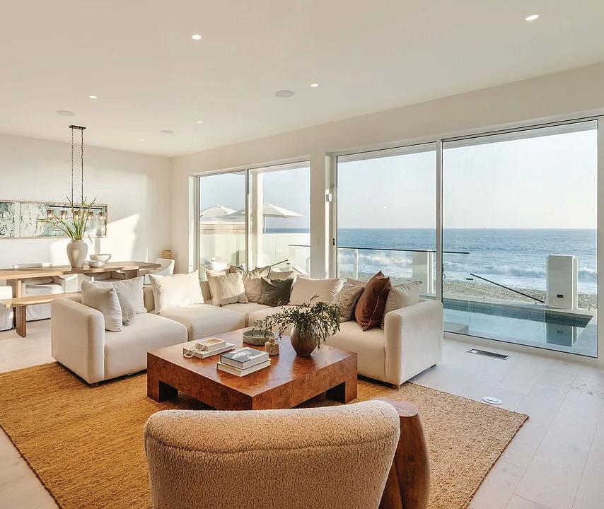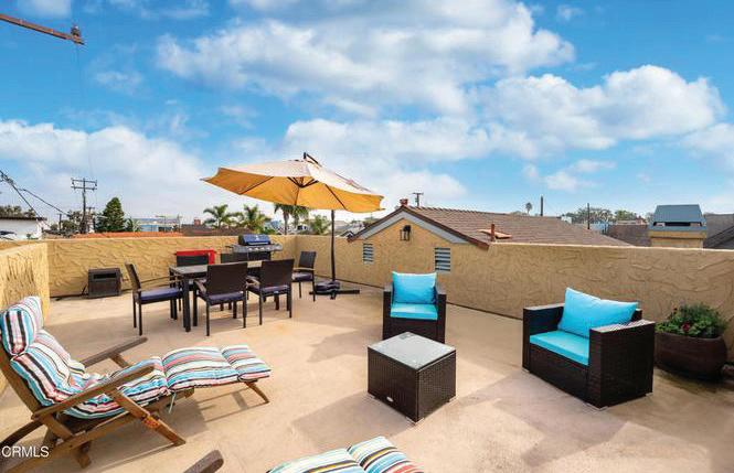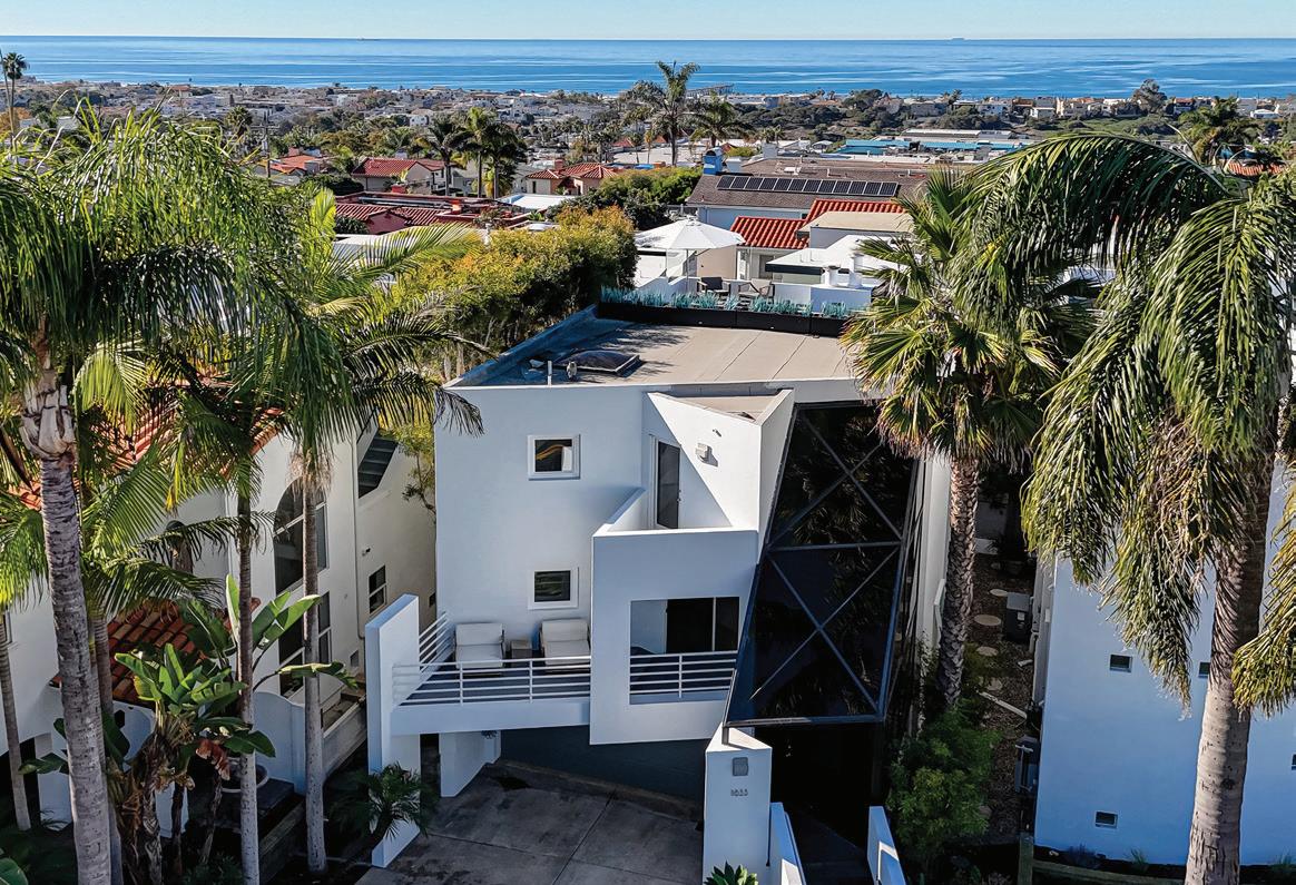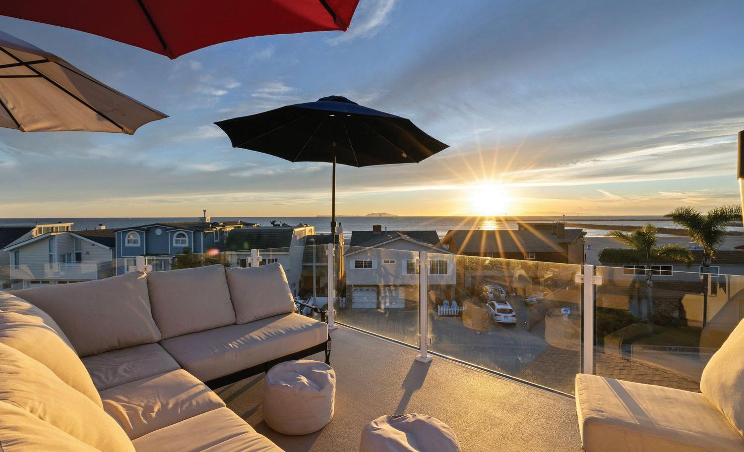 A refined coastal residence moments from the sand, offering expansive living spaces and a rooftop deck with panoramic ocean and Channel Islands views.