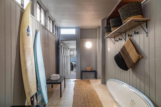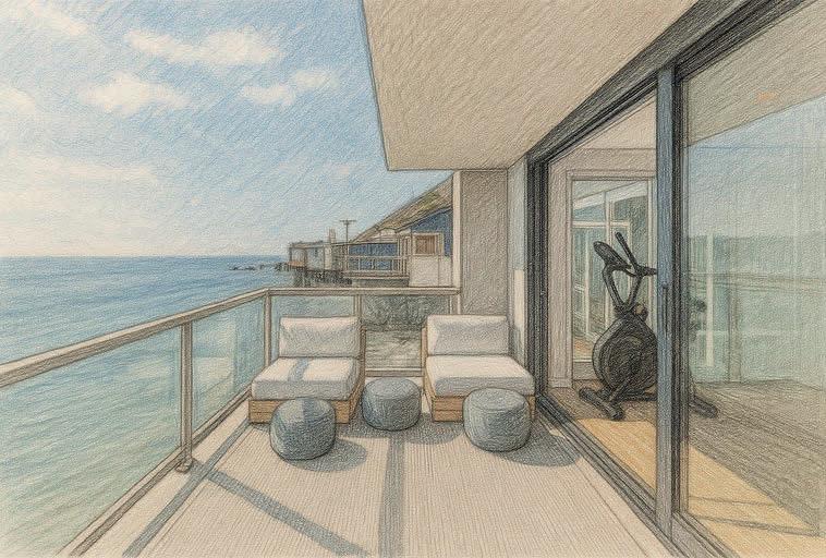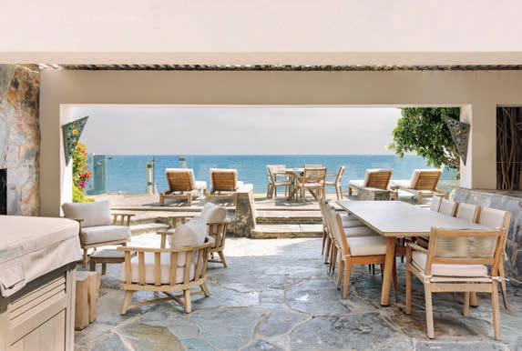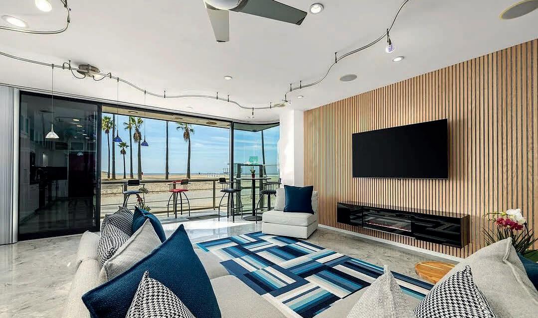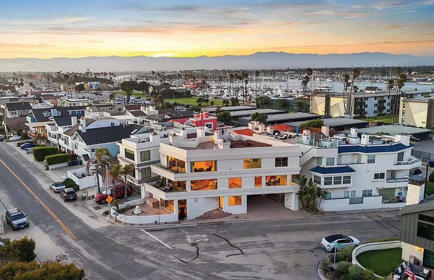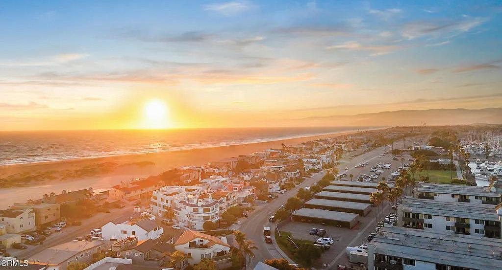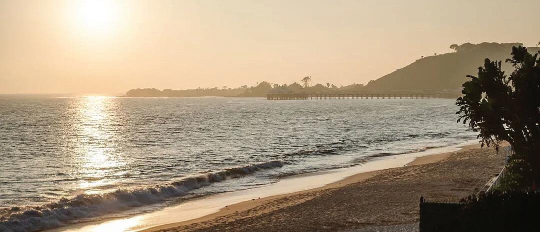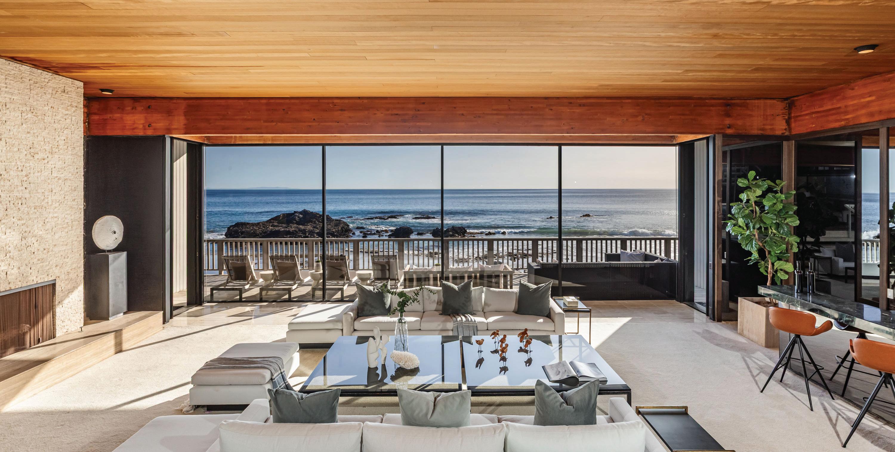 A refined coastal residence moments from the sand, offering expansive living spaces and a rooftop deck with panoramic ocean and Channel Islands views.