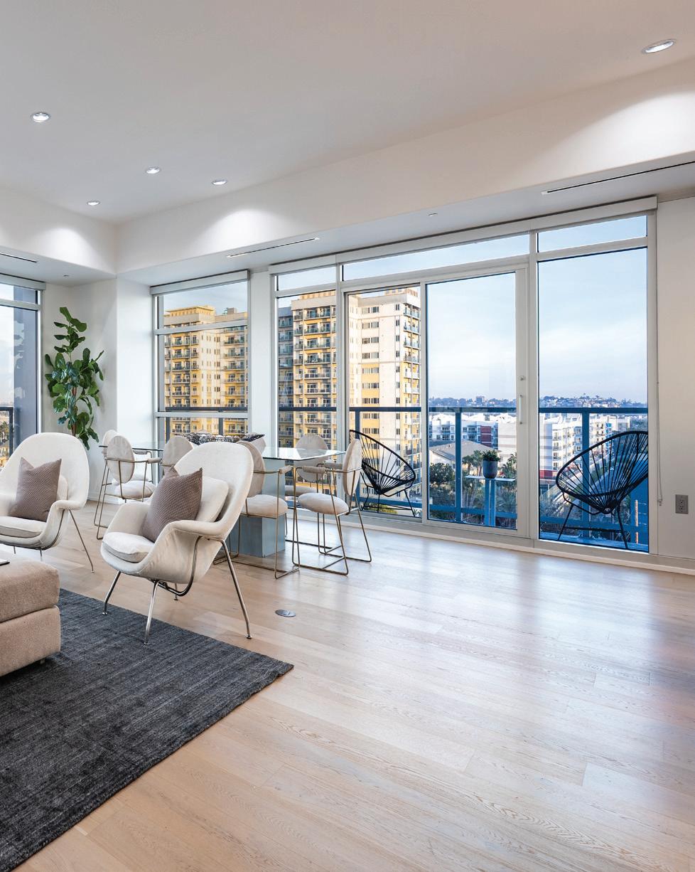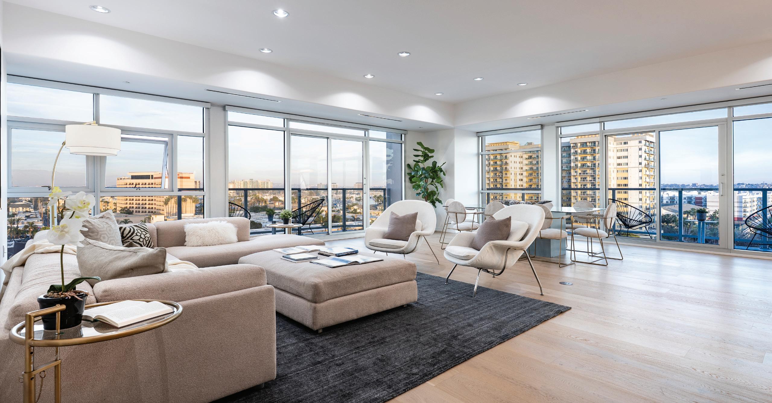 Striking Corner Penthouse with commanding Jetliner Views at Latitude 33! Stunning Architectural Boutique building by KAA Design Group, the height and scale here can never be replicated in this location and you’re at the top with only three neighbors on this floor. 2,530 sf built to impress with high ceilings, recessed lighting, solid core doors, heavy hardware, filtered water, outdoor entertaining space & massive open-concept great room perimeter lined with walls of glass to take in the surroundings. Quality materials abound with a recent designer-done update featuring gorgeous Oak hardwood floors, a new kitchen with hi-end appliances, marble backsplash and large island, spa style baths, and more. Set up as a two bedroom (originally three and easily converted back), four baths + den. This design offers a luxurious primary suite with sitting area, two walk-in closets and two baths, great for couples. A spare bedroom’s situated on the opposite end of the unit for privacy. The penthouse floor is the only level with balconies enhancing your connection to the views, California sun and Pacific Ocean breezes. Neighborhood? At your fingertips are an abundance of shops, restaurants, bars and walk / bike paths. The building’s three block proximity to the sand exemplifies coastal living, have (or want) a boat? You’re just minutes to the Marina - location, location, location! Secure controlled access building, 24 hour concierge, state-of-the-art gym, two side-by-side gated parking spaces and rare onsite guest parking round out this spectacular offering.