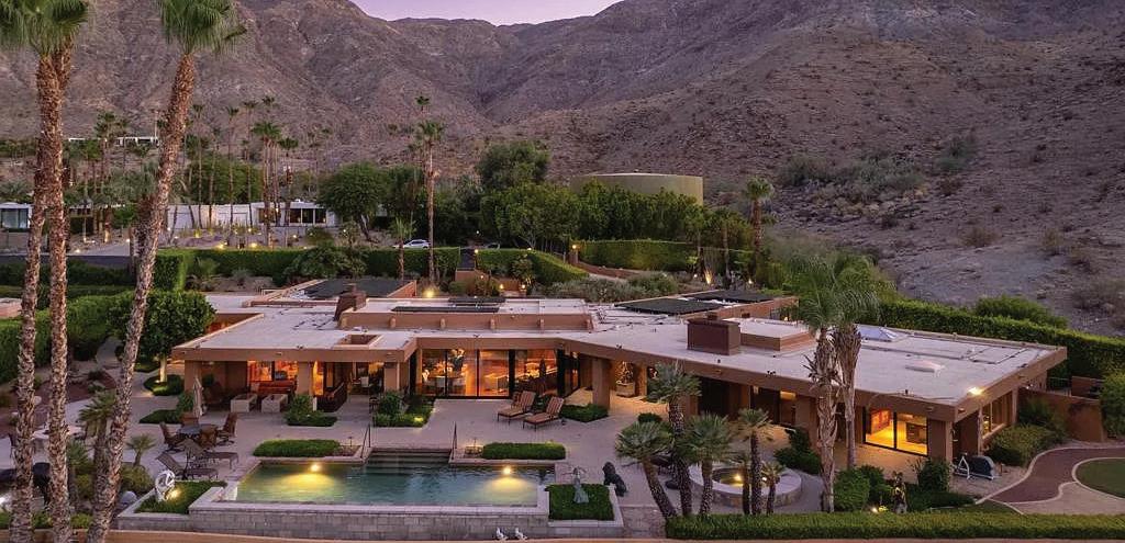Thunderbird Heights • Watch Bighorn sheep from this high-up, private hillside location. Late midcentury modern home features an enormous main living area, outdoor playground with private putting green, firepit, and a large cool pool & spa. 4BD | 4BA, 5630 SF, and almost 1 Acre | $4,450,000