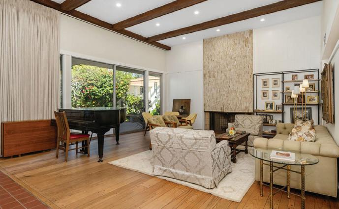 A true Mid-Century Modern gem in coveted South Palm Springs, Canyon Vista Estates captures the timeless architectural vision of Charles E. Du Bois, thoughtfully built by Roy Fey and set on FEE land (you own the land). This residence is one of only 26 homes in an intimate, low-density enclave defined by classic desert lines, manicured grounds, dramatic mountain views, two pools, spas, and a tennis court in the iconic Twin Palms neighborhood. Expansive Living and Dining spaces showcase soaring 12’ ceilings, clerestory windows, and tile flooring throughout. A comfortable Den with fireplace offers flexibility and can serve as a third bedroom. The sunken bar and generous patio set the stage for seamless indooroutdoor living, with direct access from the Kitchen, Living Room, and Primary suite. The eat-in Kitchen features sleek countertops and stainless steel appliances. A spacious Laundry Room with abundant storage connects to the oversized two-car garage.