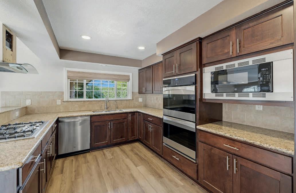 Sommerset • Ideally positioned as an end-unit and beautifully maintained. Upgraded, remodeled kitchen, high ceilings, covered patio. Beautifully cared for and move-in ready. Close to community pool, pickleball/tennis court, and walking trail. 2BD | 2BA | 1320 SF | $444,000
