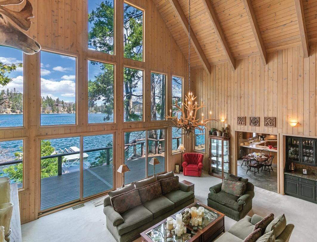 Perched high above the lake on coveted Emerald Drive, this chic charcoal-grey retreat offers exceptional lake views from two expansive decks and the rare convenience of a level entry. With lake rights, walkability to charming Cedar Glen, and just minutes from the Village, Marina, and McKay Park, this home truly has it all. Spanning two generous levels, the home features two large living areas, each with its own fireplace. The main level’s open floor plan seamlessly connects the living room, dining area, and kitchen—perfectly positioned to capture uninterrupted lake views through a dramatic wall of windows stretching across the back of the home. The home sits next to an undeveloped neighboring lot, enhancing privacy. Additionally, a large build-up area offers potential to add a 1-bedroom, 1-bath ADU if desired.
