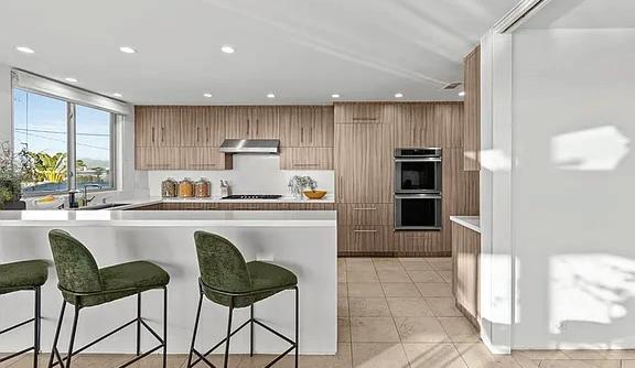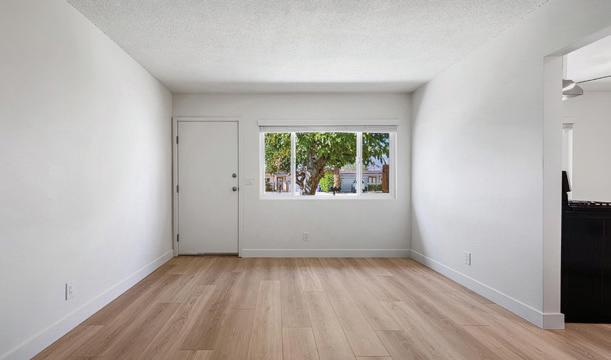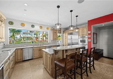 Fully renovated and move-in ready, this pool-facing townhome offers refined coastal living with elevated designer finishes throughout. Completed in 2022, the renovation includes marble countertops, white oak cabinetry, hardwood floors, Venetian plaster walls, floating vanities, Moroccan zellige tile, and curated designer wallpaper accents. Recent upgrades further enhance functionality and style, including new garage flooring, custom cabinetry, tailored primary closet organizers, and a sleek floating TV shelf. The home features a private lanai-style outdoor space, a dedicated laundry room, and a direct-entry two-car garage with abundant storage. Meticulously maintained and continuously improved since its last sale just three years ago, the property offers peace of mind along with style. HOA dues cover landscaping, roof, termite, exterior maintenance, water, trash, sewage, and the master insurance policy, including earthquake coverage. The community pool, sauna, and cabana are currently undergoing renovation and are expected to be completed early this year. Ideally situated approximately 0.3 miles from the ocean, this home offers exceptional walkability.