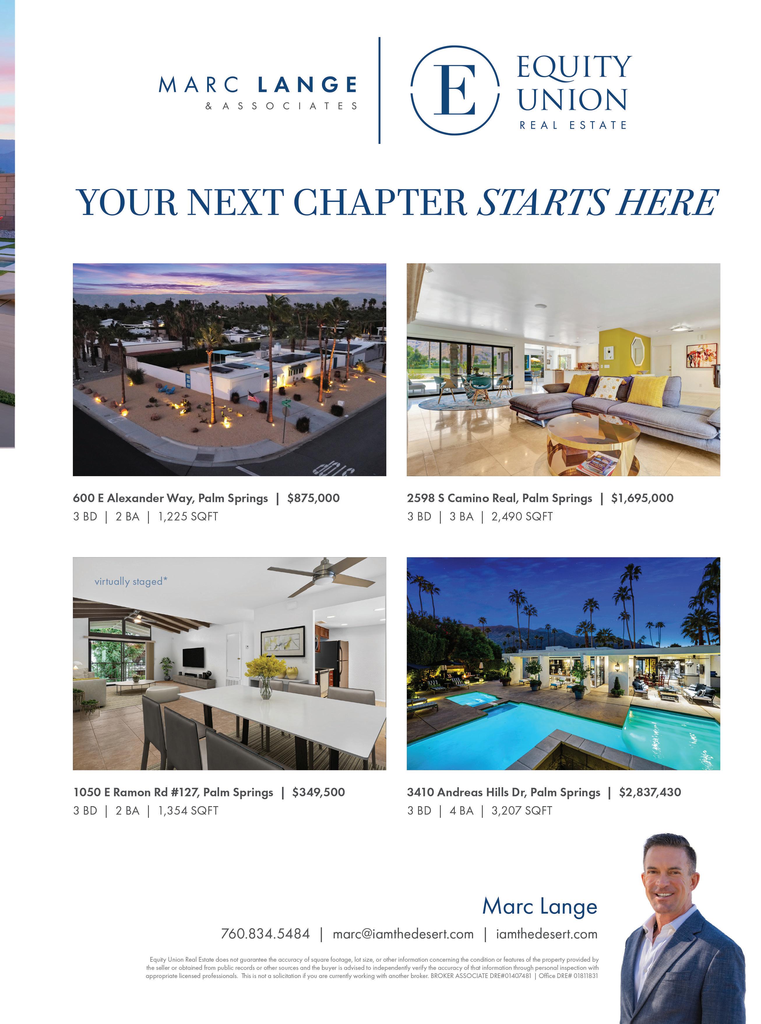 439 E RACQUET CLUB ROAD, PALM SPRINGS, CA 92262 • 3 BEDS / 2 BATHS / 1,225 SQFT / $1,125,000
