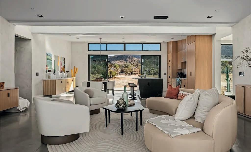 Located in the guard-gated community of Monte Sereno, this 3,510 sq ft modern villa offers refined contemporary living on fee land in South Palm Springs. Sited on a premium south-facing lot, the home enjoys unobstructed western views of Mount San Jacinto from the pool and primary suite. Offered furnished, the interiors feature a neutral, cohesive palette and thoughtfully curated finishes throughout.