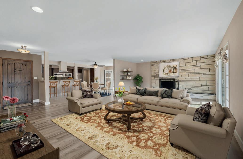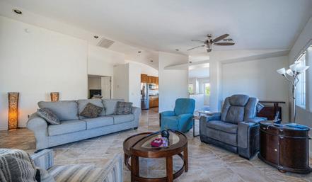 Sun City Shadow Hills • Discover refined comfort and privacy in this beautifully appointed pride-ofownership home. The open great room floor plan creates an easy flow between living, dining, and entertaining spaces. Expansive outdoor area with multiple private seating areas. 2BD | 2BA | $515,000
