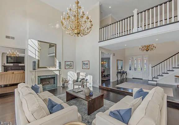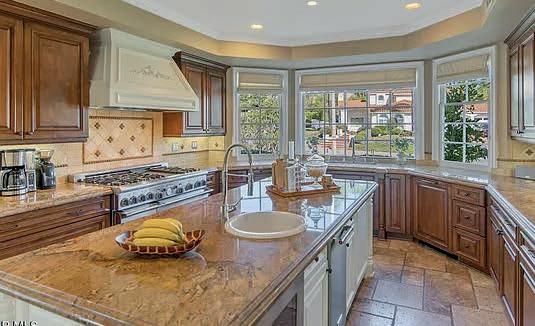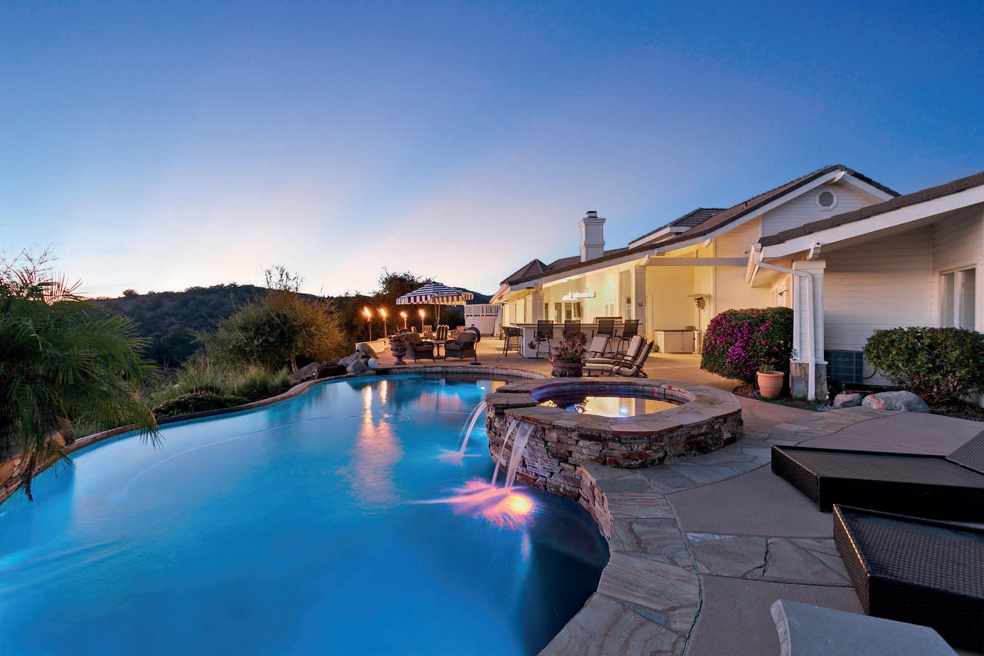 Welcome to this entertainer’s estate in the coveted Morrison Highlands, one of the Conejo Valley’s most sought-after communities. Set on a premier lot, this stunning residence showcases over $200,000 in upgrades and an expansive 4,600+ sq ft floor plan. Inside, you’ll find a formal living room with soaring ceilings and fireplace that opens directly to the backyard, plus a formal dining room leading to the Chef’s kitchen with Thermador range, Viking refrigerator, center island, wine fridge, double ovens, two dishwashers, and Aquasana water filtration. The kitchen flows into a cozy great room with fireplace, built-ins, and backyard views. The entertainer’s backyard offers a travertine patio, remodeled pebble pool with LED lighting, AquaLink remote control, new landscaping, and an outdoor kitchen with bar seating. Upstairs, the primary retreat features a fireplace, soaking tub, shower, and balcony with breathtaking mountain views.