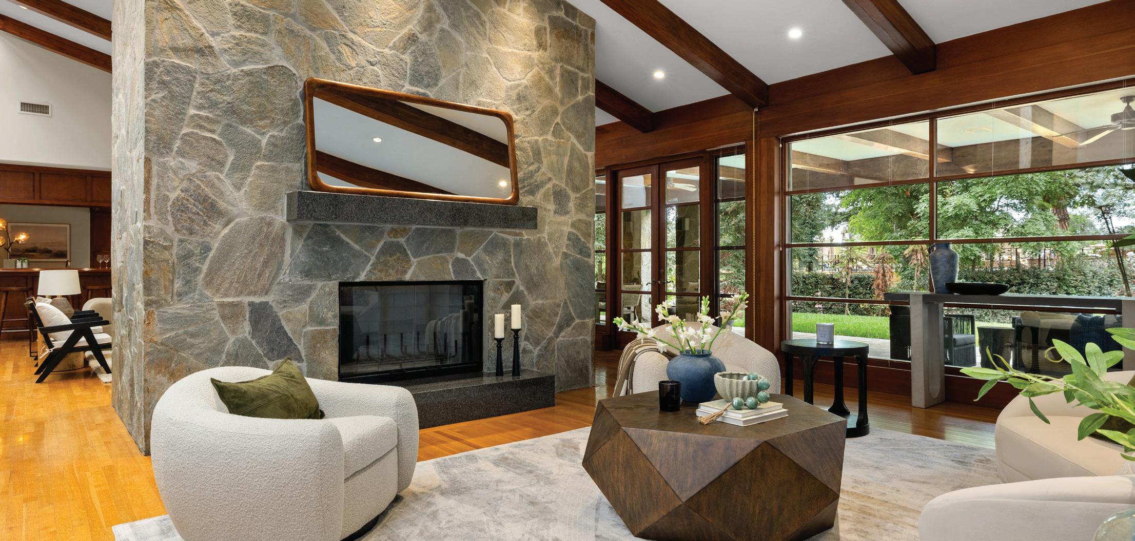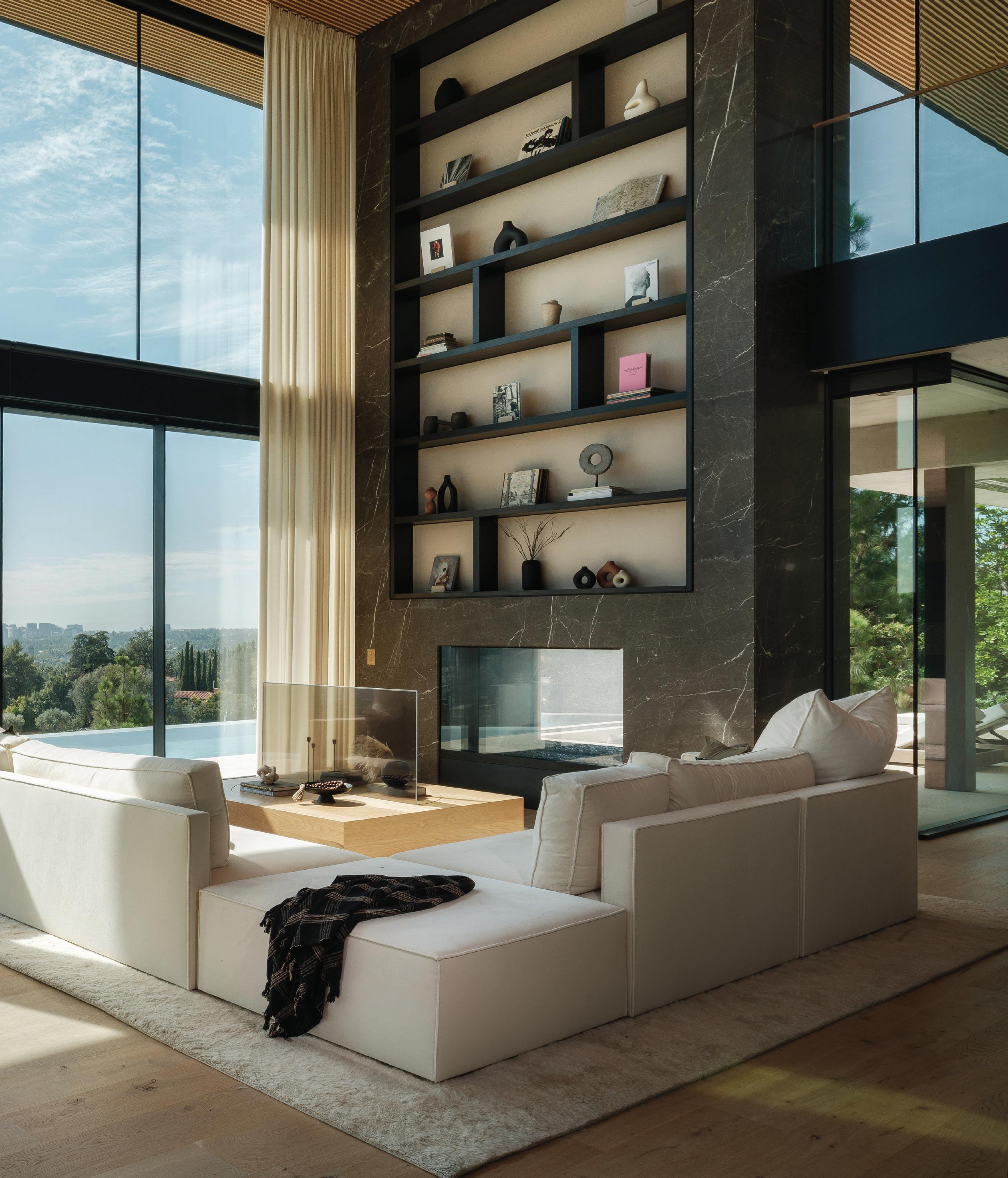 and nearby town amenities. When it’s time to unwind, enjoy the sauna, steam shower, swimming pool, and outdoor kitchen. Living at Sherwood offers an exceptional sense of peace and security, tucked away from the bustle of the city yet only 39 miles from Beverly Hills. This is no ordinary home. If you have an eye for classic architecture and spaces with soul, come experience it in person.