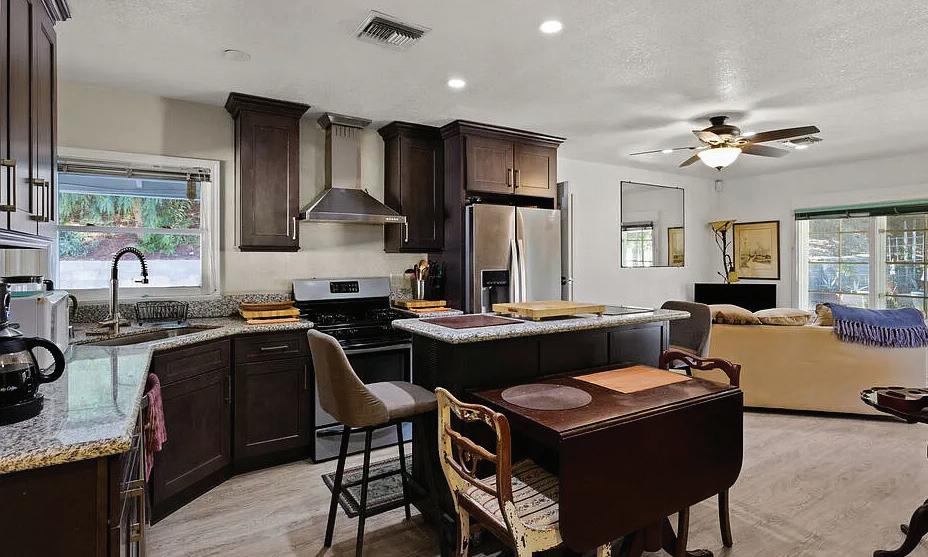Peacock House: Warm and inviting, with 3 bedrooms and 1 bath on the main level, plus a private studio below featuring 1 bedroom and 1 bath.