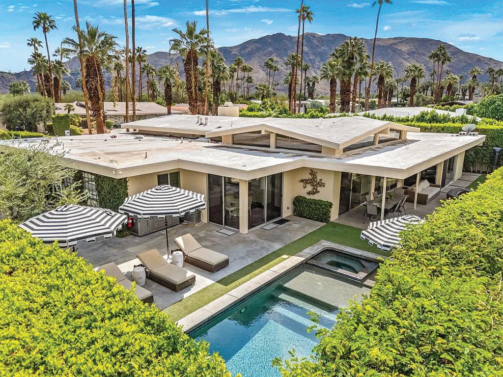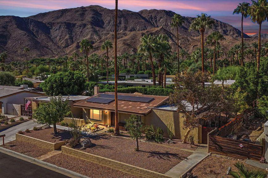 Classic 1970s Palm Springs showplace offered fully furnished, on fee land with no HOA in the Canyon Palms area of Indian Canyon. Set on a corner lot with no overhead wires, the home features a private pebble pool and spa, sculpted gardens with fire features, and multiple outdoor retreat areas. Offering over 2,700 sq ft with 2 large bedrooms, a den/media room (optional bedroom), and 3 baths, this designer-curated home showcases high-end finishes, a standout residential bar, Bosch appliances, and updated systems—just minutes from downtown, the airport, golf, and Smoke Tree. OFFERED AT $2,275,000