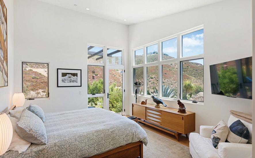 A modern retreat where architecture and nature meet in perfect harmony. Designed by ERW Design, this newly built showpiece features a soaring glass-wrapped great room, a chic chef’s kitchen with handcrafted walnut cabinetry, and a cozy den overlooking lush gardens. The first-floor primary suite offers a spa-like escape with mountain views and zellige-tiled elegance. Sustainable finishes—bamboo and cork flooring, solar power, backup batteries, and EV charging—elevate the home’s modern ethos. Outside, pepper trees, jacarandas, vegetable gardens, and seasonal springs create a serene landscape with room for a pool, tennis court, or horses. With three ensuite bedrooms and a view deck upstairs, plus a private guesthouse, this is a rare blend of privacy, personality, and effortless California cool.