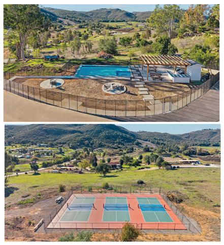 The Estate features 4 distinct residences, a resort-style pool area, 3 pickleball courts, 3 gas fire pits, two built-in BBQs with bar seating - resort style amenities, and 3 charming tiny homes (ADUs), each with its own spacious front porch and sweeping views of the surrounding landscape. Also, an open faced barn that can be set up for events or dining.