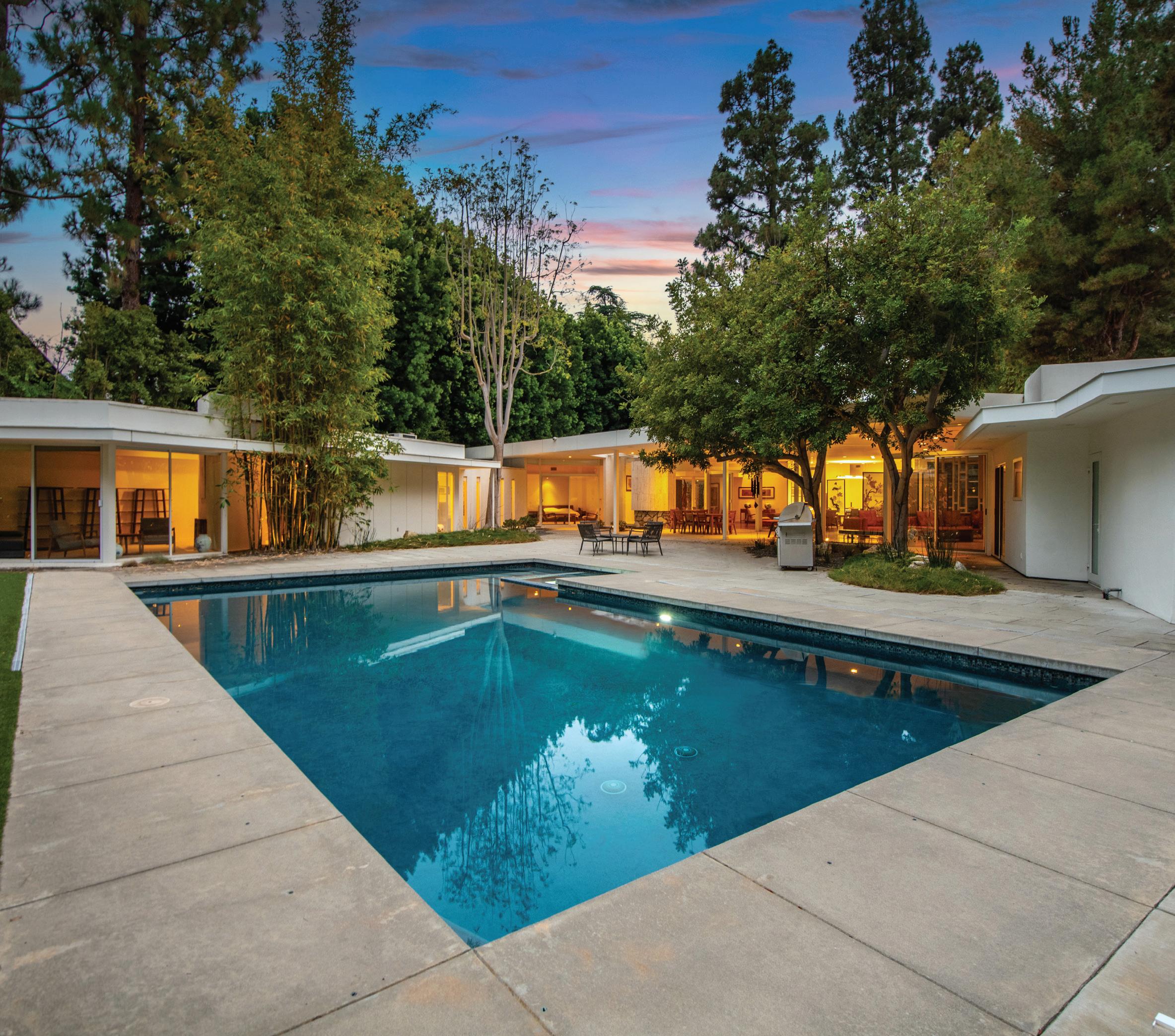 A true architectural gem by master architect A. Quincy Jones, AIA, this mid-century masterpiece is nestled in the heart of Beverly Hills on a rare street-to-street 1.2-acre lot north of Sunset. Exemplifying timeless California modernism, the home showcases original mid-century details including iconic floor-to-ceiling glass walls that flood the interiors with natural light, terrazzo flooring, fieldstone accent walls, and a classic step-down bar. The open-concept layout seamlessly connects expansive living and dining spaces to multiple patios and outdoor spaces, ideal for effortless indooroutdoor living. The primary suite offers a serene retreat with a cozy fireplace, dedicated relaxation lounge, and a spa-inspired bath, all opening to a lush, park-like backyard complete with a swimmer’s pool and N/S tennis court. A thoughtfully designed two-unit guest house complements the original architecture, providing additional space and privacy while honoring the legacy of Jones’ vision. This is a rare opportunity to own a residence that combines architectural integrity, historic significance, and effortless style—an offering nearly impossible to replicate. 1010 N REXFORD DRIVE, BEVERLY HILLS, CA 90210