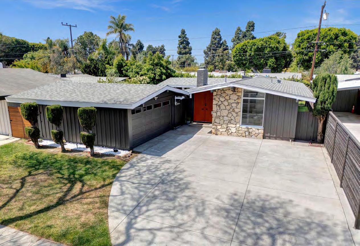 New landscaping was designed by Ivette Soler Gardens. The surrounding hillside greenbelt affords miles of hiking and the ability to live privately within nature, while savoring a bird’s eye view of the city and coastline below. Residence incorporates: Open plan living, dining and den areas, sensitively updated kitchen, three bedrooms, two baths, original swimming pool and diving board, gardens, and 2 car carport. The original accordion door between bedrooms 2 and 3 may be restored to its original configuration.