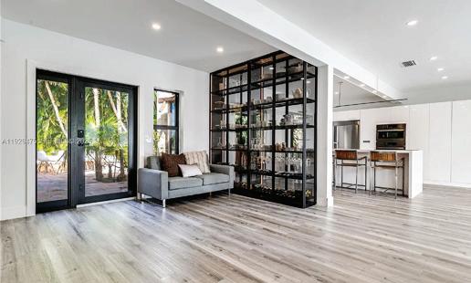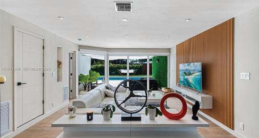 Completely redesigned modern waterfront home in the exclusive Normandy Shores community of Miami Beach. This 4 bed, 4.5 bath residence spans 3,386 sq.ft. under A/C of bright open living space with floor-to-ceiling glass, designer kitchen, and refined finishes throughout. Expansive backyard with pool and tropical landscaping.
