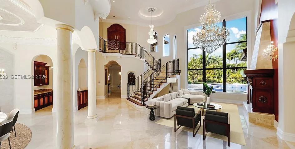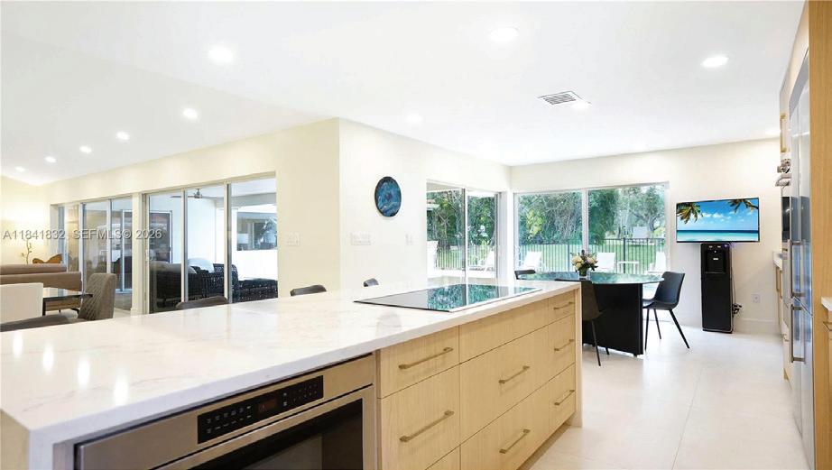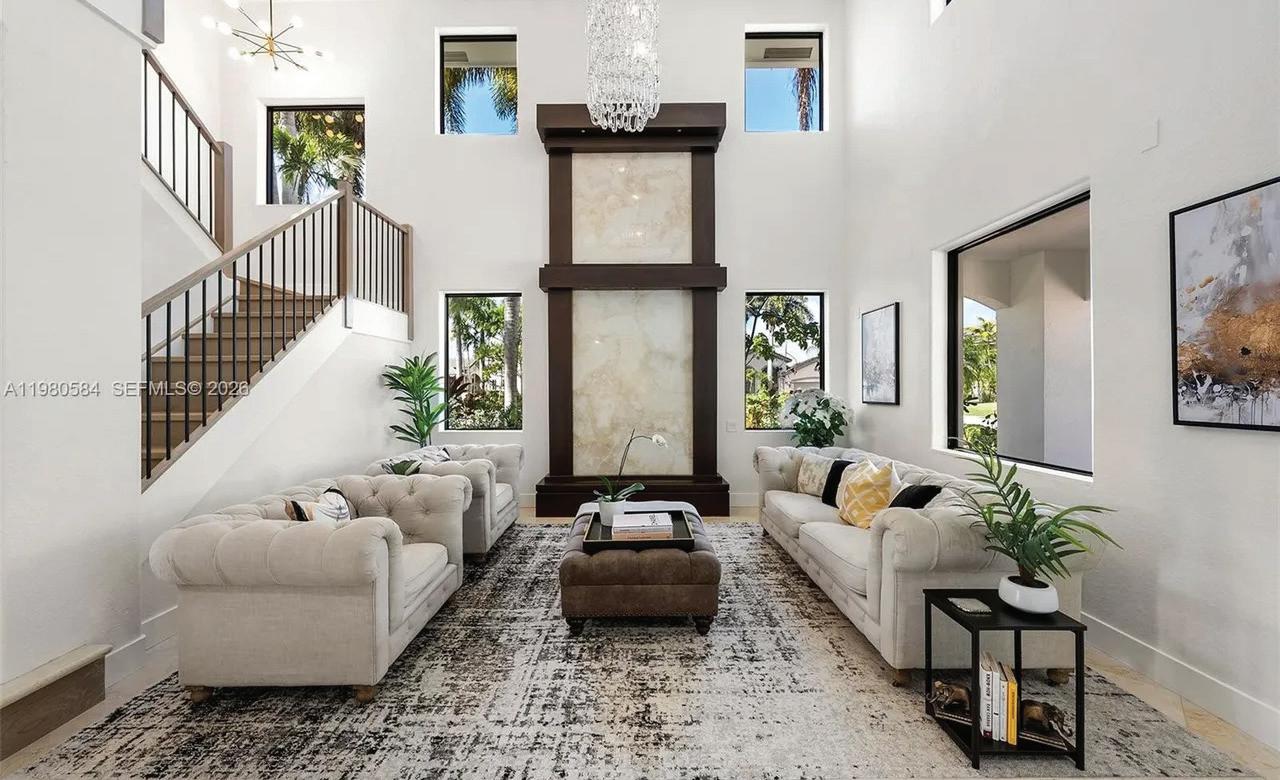 Coral Springs Incredible waterfront estate on a private cul-de-sac in the exclusive Whispering Woods community. Elegantly renovated with new plank flooring, a professional-grade kitchen, and a luxurious primary suite with a spainspired bath. Over 5,000 sq ft of open living and entertaining space featuring vaulted wood-beam ceilings, a striking two-sided fireplace, and a spacious room ideal for a gym, playroom, or in-law suite. Impact windows and doors, newer concrete tile roof, and exceptional outdoor living with a resort-style pool, spa, and tiki entertainment area. Set on one of the largest lots in the neighborhood with outstanding curb appeal easy to show and sure to impress. Unfurnished. Furniture sold separately.