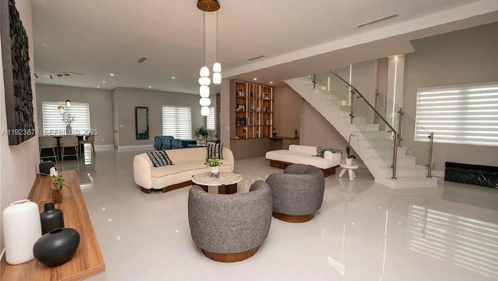 Welcome home to this beautiful 4-bedroom, 4-bath single-family residence located in the highly sought-after community of Surfside. Bright and spacious open floor plan with elegant marble floors throughout. Chef’s kitchen features upgraded stainless-steel appliances, including a six-burner gas range, marble waterfall countertops, custom cabinetry, and designer backsplash. Impact doors open to a private patio and fenced yard. Walking distance to the beach, Bal Harbour Shops, and local restaurants. Ample space to build a pool and summer kitchen. A true entertainer’s delight with fruit trees and plenty of outdoor space. Photos have been virtually staged.