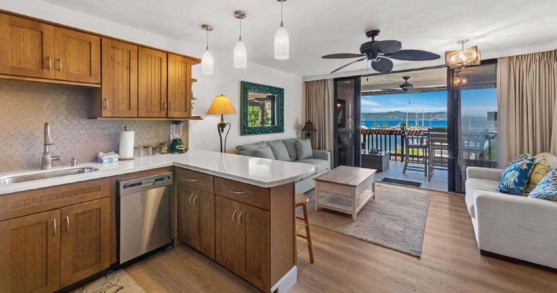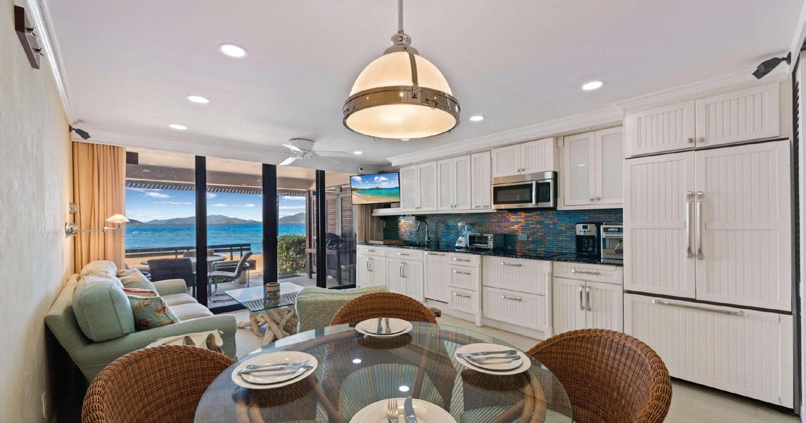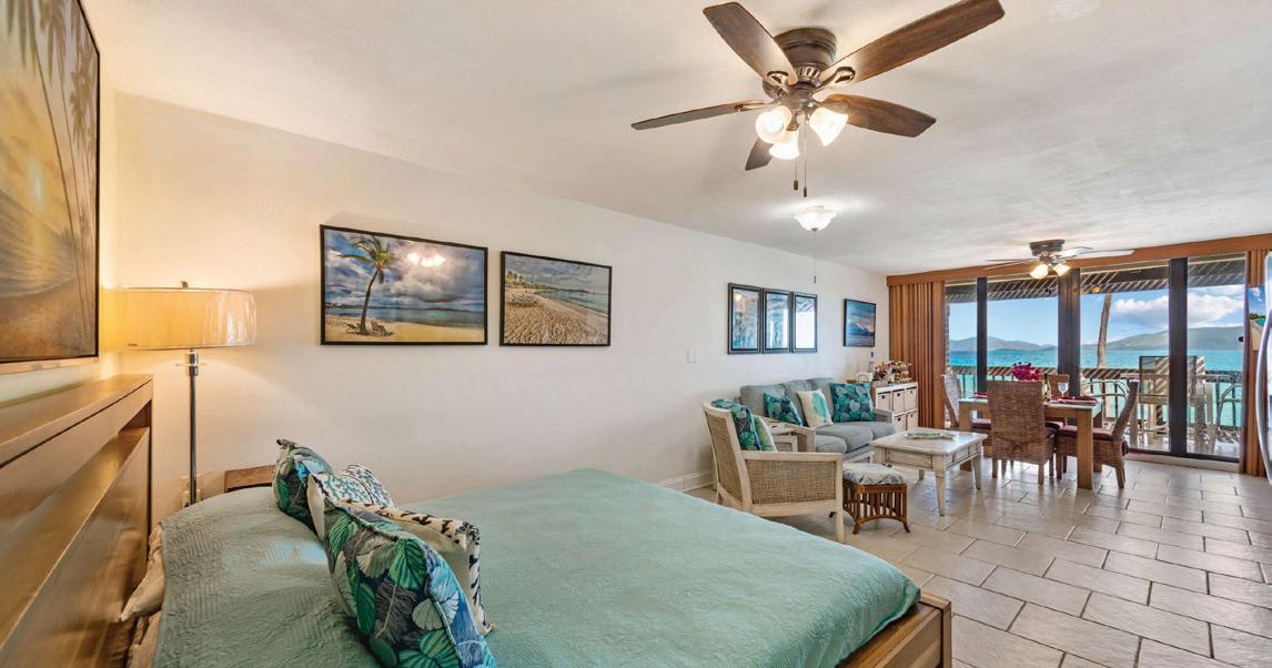 This exceptional walk-out studio features high-end finishes and thoughtful craftsmanship. The interior showcases custom cabinetry with intelligently designed storage and striking custom tile work. Sweeping views of St. John and the British Virgin Islands set a tranquil tone throughout. Step directly from the unit to the oceanfront pool, marina, restaurants, and swimming areas, all just steps away for effortless island living.