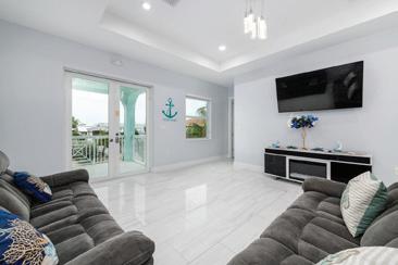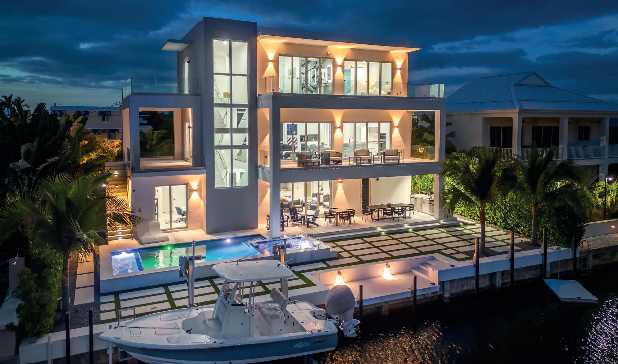 This extraordinary new construction stunner is engineered as a rare modern fortres. Built entirely of concrete, built to the most stringent hurricane-resistant codes, and designed for the discerning buyer who demands architectural excellence, security, and elevated coastal living. Set on prime open water with sweeping panoramic views, this property delivers the rare combination of minimalist modernism, structural integrity, and luxury resort-style design. The residence showcases a dramatic full flat rooftop deck spanning the entire top of the main home, offering uninterrupted 360 ocean sunrise and sunset views, private viewing platform unlike anything else in the Lower Keys.