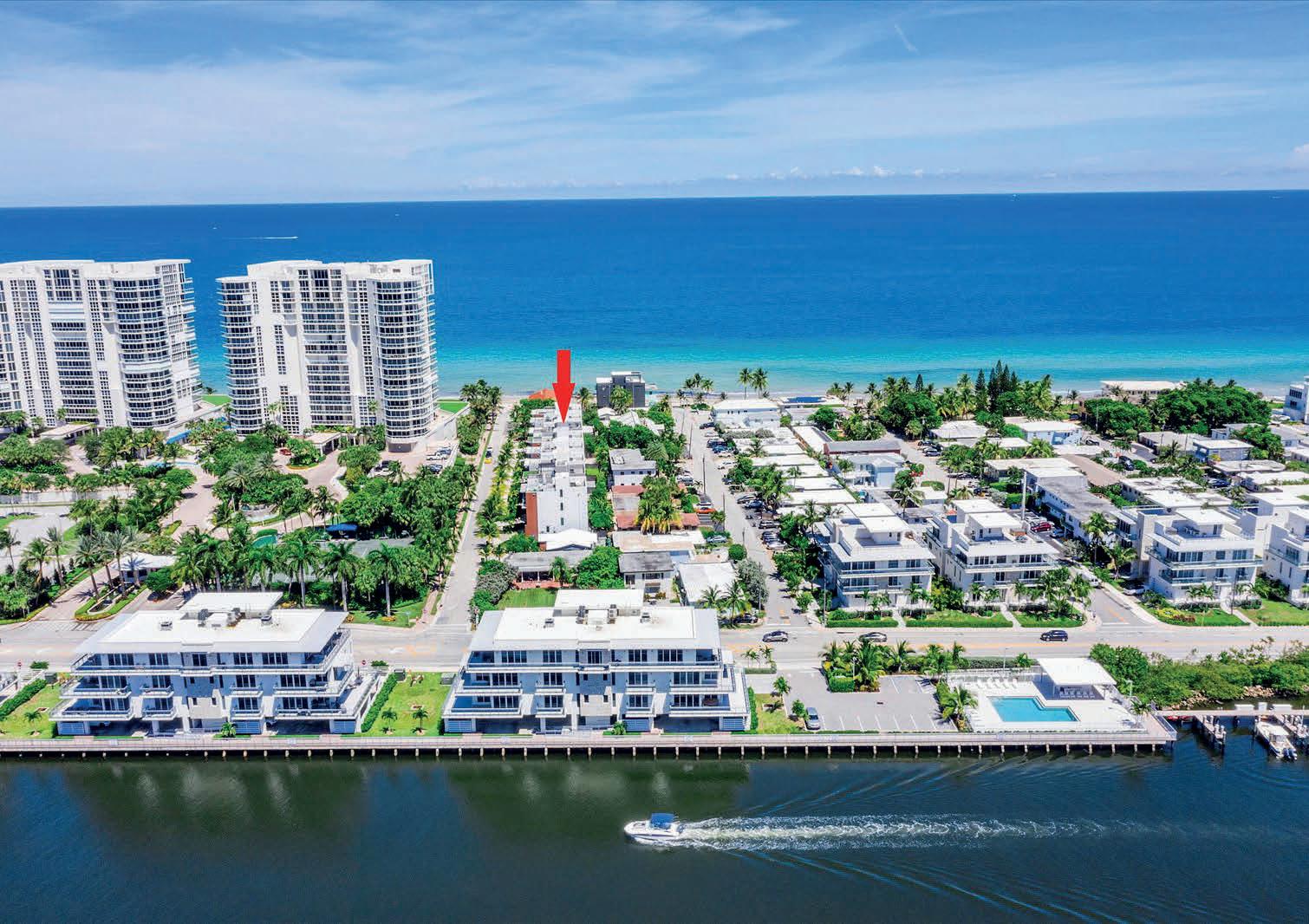 Experience waterfront living at its finest in this rarely available corner residence at Royal Palm Arms in Lighthouse Point. Situated on one of the widest canals with direct access to the Hillsboro Inlet, this 2-bedroom, 2-bath home features high ceilings, marble floors, expansive glass doors with stunning water views, and fresh interior paint. Newly installed LED ceiling lighting and modern ceiling fans enhance the home’s refined style. The boutique 4-unit building offers a heated pool, and more.