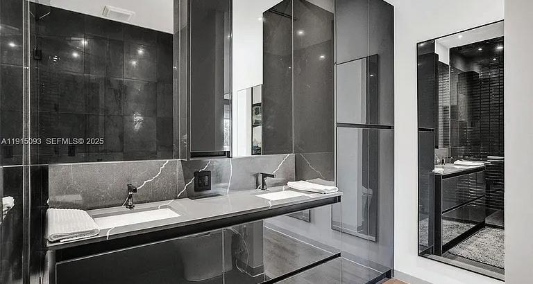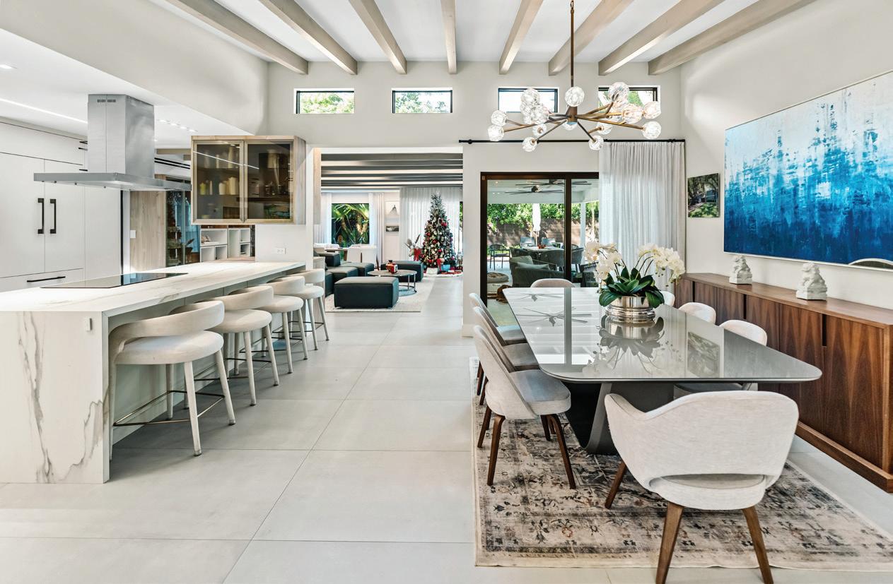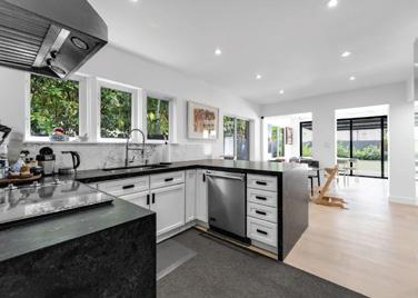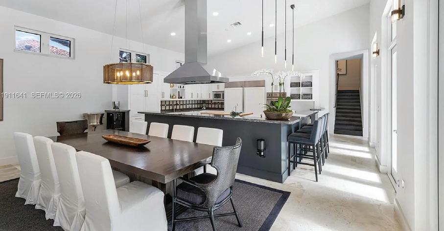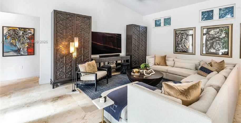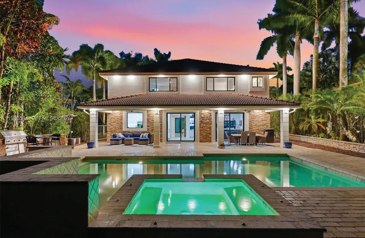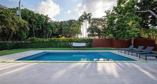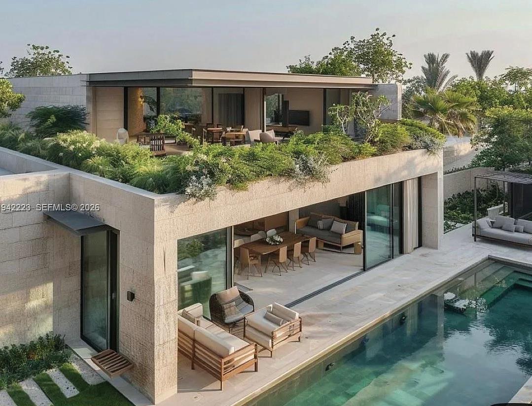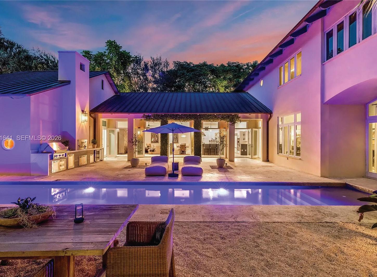 Custom residence defined by a transitional architecture and design, seamless indoor–outdoor living. An open plan with soaring ceilings showcases a chef’s kitchen - dark granite, gold accents, butcher-block island, pro appliances-, a serene primary suite, and dedicated wellness spaces including a high-end gym, steam and dry sauna. A resort-style lap pool & spa anchor an expansive stone patio with a fully equipped outdoor kitchen, including pizza oven, grill, ice-maker, wine cooler, private dining, lush landscaping, and privacy hedge. Very high elevation with a rare NO flood insurance necessary, a dark metal roof, and an elegant paver drive complete this exceptional turnkey residence. 7370 VISTALMAR STREET, CORAL GABLES, FL 33143