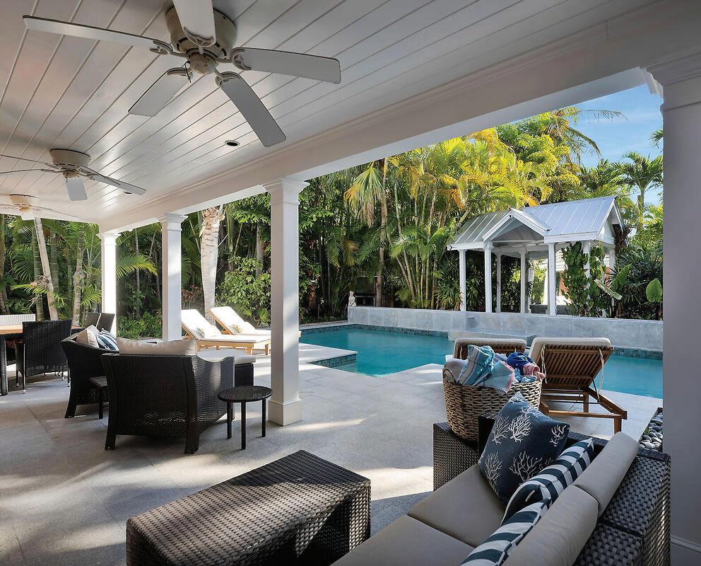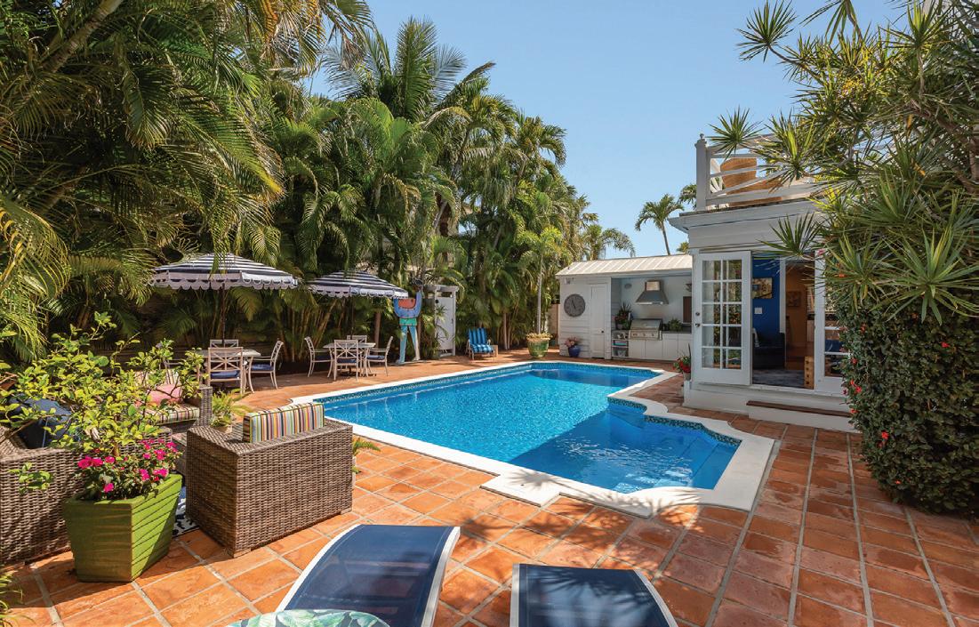 Experience the grandeur of this exceptional six bedroom, five and a half bath estate located on one of the most exclusive streets in Key West. A stunning wall of bougainvillea and the stately front porch welcome you to this 3,751 square foot property on an expansive 10,750 square foot lot that embodies historic Key West architecture. The main residence features four bedrooms, three and half baths of elegant living spaces, including a first-floor mother-in-law suite. Timeless design is found throughout with abundance of natural light and views of the lush, exotic landscape out every window. The great room features 12’ ceilings, a curved wall of windows and French doors that lead to the serene, covered porch and outdoor dining space. The kitchen is a chef’s dream equipped with new Viking appliances, ample counter space, and a view that overlooks the gorgeous, azure pool. The second level includes a spacious primary suite and two additional guest rooms, one of which has a balcony with treetop views and the island’s best spot to view the spectacular 4th of July firework show. Two charming detached guest cottages tucked amongst the gardens offer secluded retreats each with full baths and one offering a living room and kitchenette. The outdoor oasis is defined by the oversized L-shaped pool and outdoor kitchen with built-in Viking grill; the perfect space for entertaining. This property is an exceptional, private sanctuary at an unbeatable location just one block from the crystal-clear Atlantic, tennis and pickleball courts, the esteemed Casa Marina Hotel and iconic White Street Pier. Don’t miss the opportunity to call this remarkable estate your home! Seller is a licensed real estate broker and related to the listing agent.
