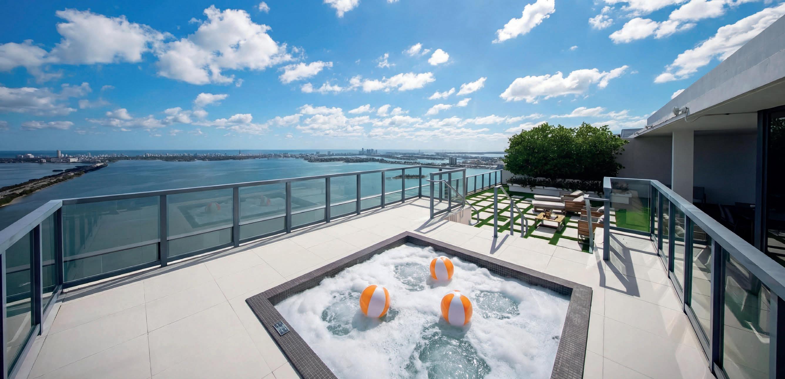 • Oversized private, finished-floor, wrap-around balconies with seamless glass railings